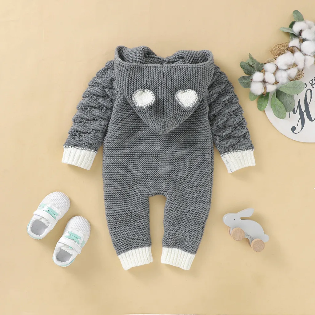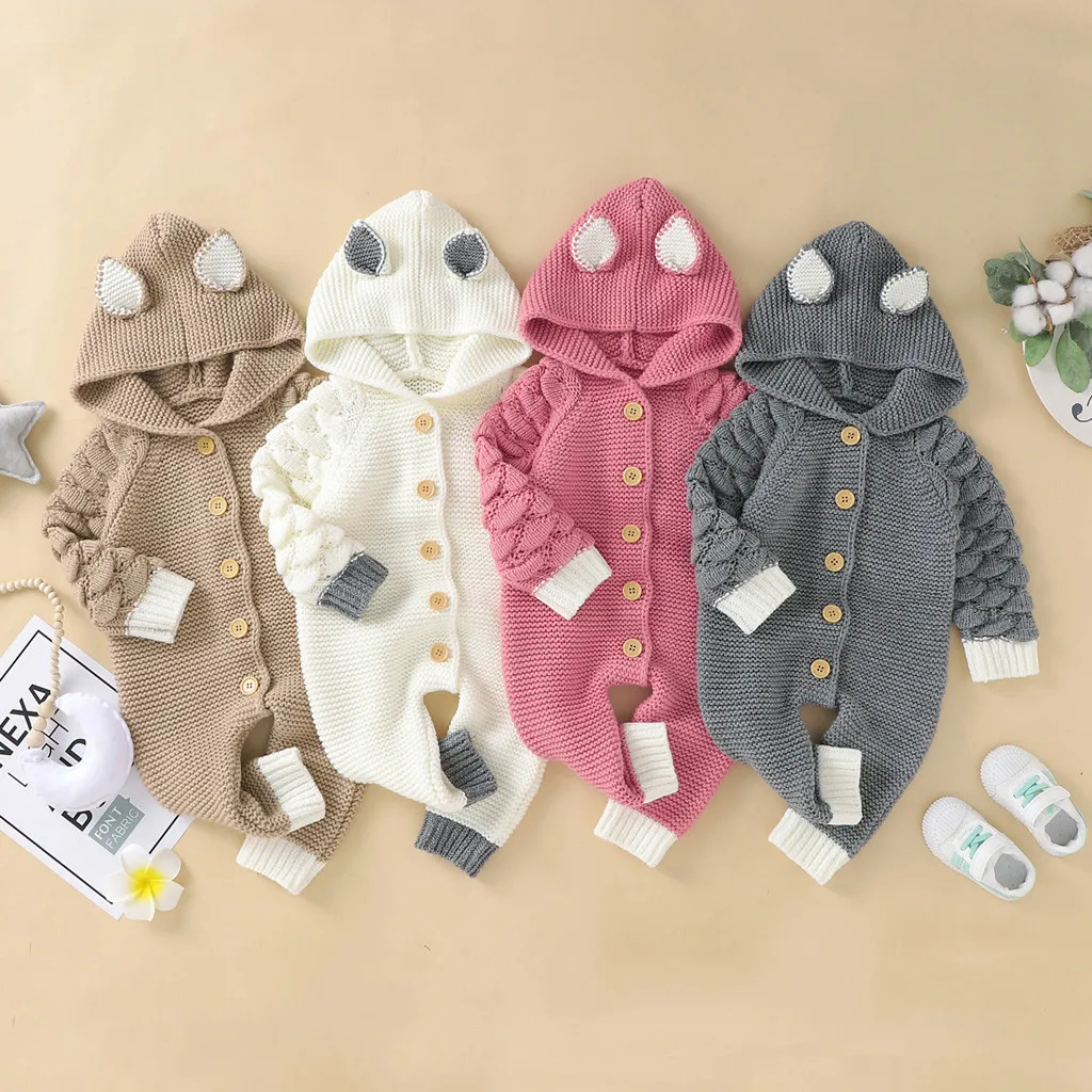 Новорожденный ребенок Зимняя теплая вязаная верхняя одежда для мальчиков и девочек; Свитер с капюшоном; Комбинезон