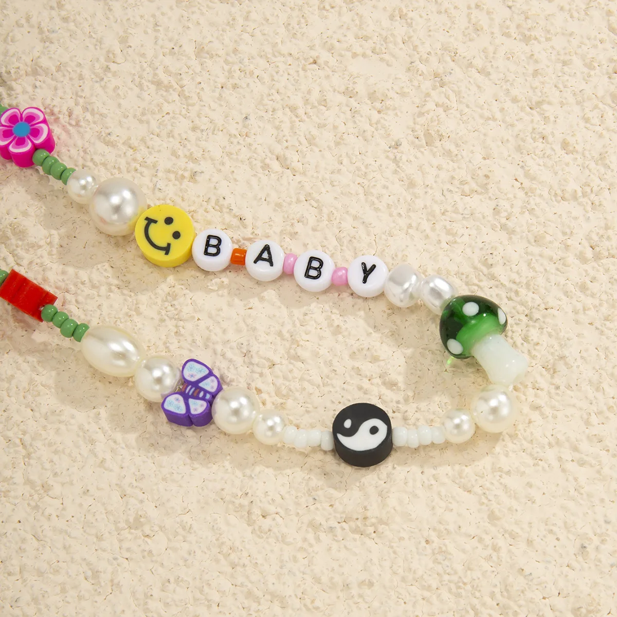 Ins тканая улыбка, надпись любви из бисера, цепочка для телефона с защитой от потери, мягкий керамический шнурок, аксессуары для мобильного телефона для девочек, колье-ключи для телефона