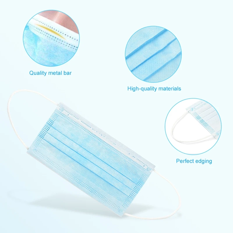 Маски для лица одноразовые синие с 3-слойным фильтром, 10-600 шт.
