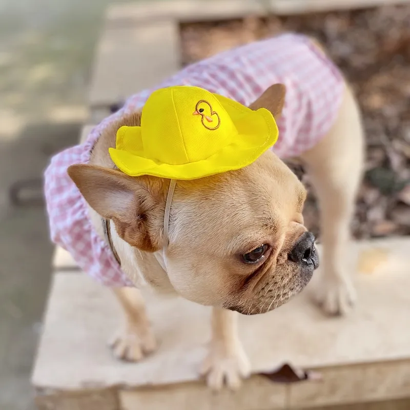 Шляпа для маленьких собак с желтой уткой, летняя шляпа от солнца для щенков, летняя шляпа для домашних животных, милая маленькая шляпа для фотографирования домашних животных, диаметр 14 см