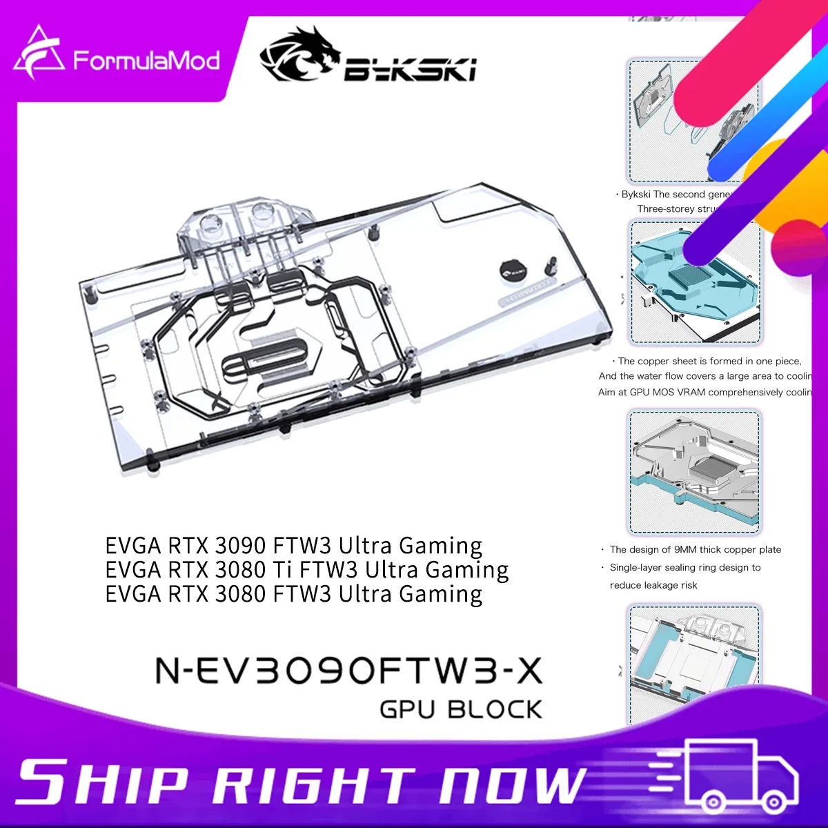 Блок водяного охлаждения Bykski 3090 3080 GPU, для EVGA RTX3090 3080Ti 3080 FTW3 ULTRA GAMING, кулер GPU с полным покрытием