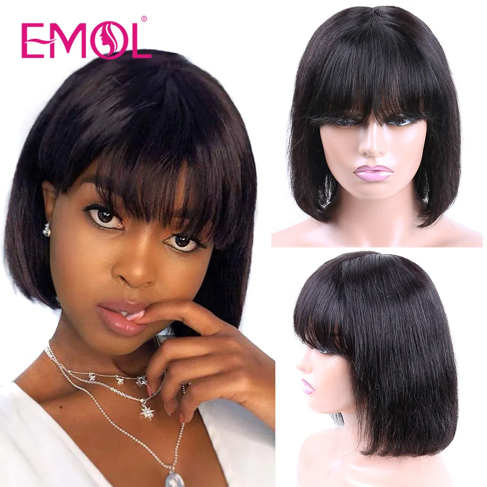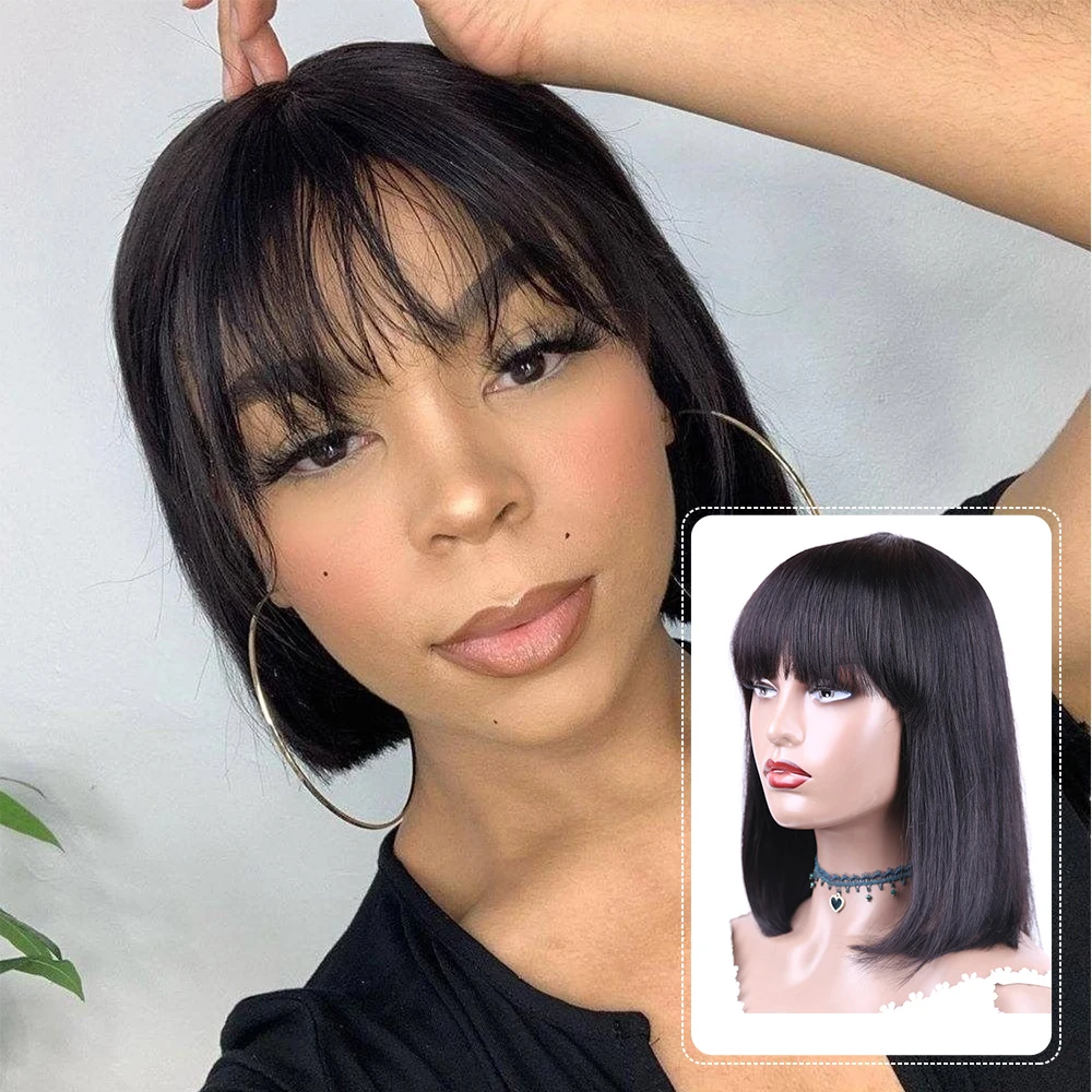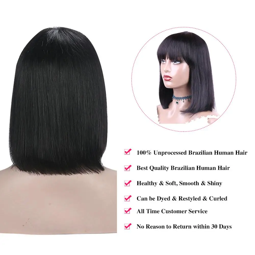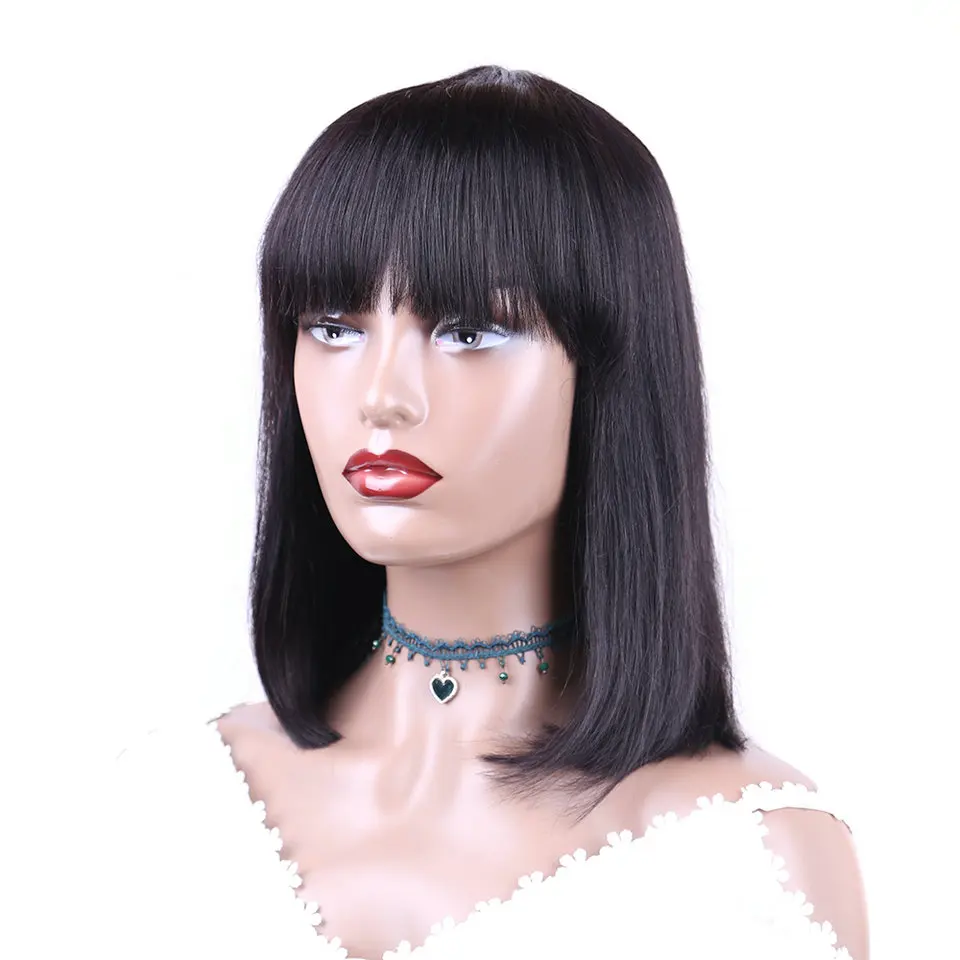Парик короткий боб с челкой, прямые бразильские парики из натуральных волос Реми, полностью машинное изготовление, Короткие парики боб для женщин, оптовая продажа