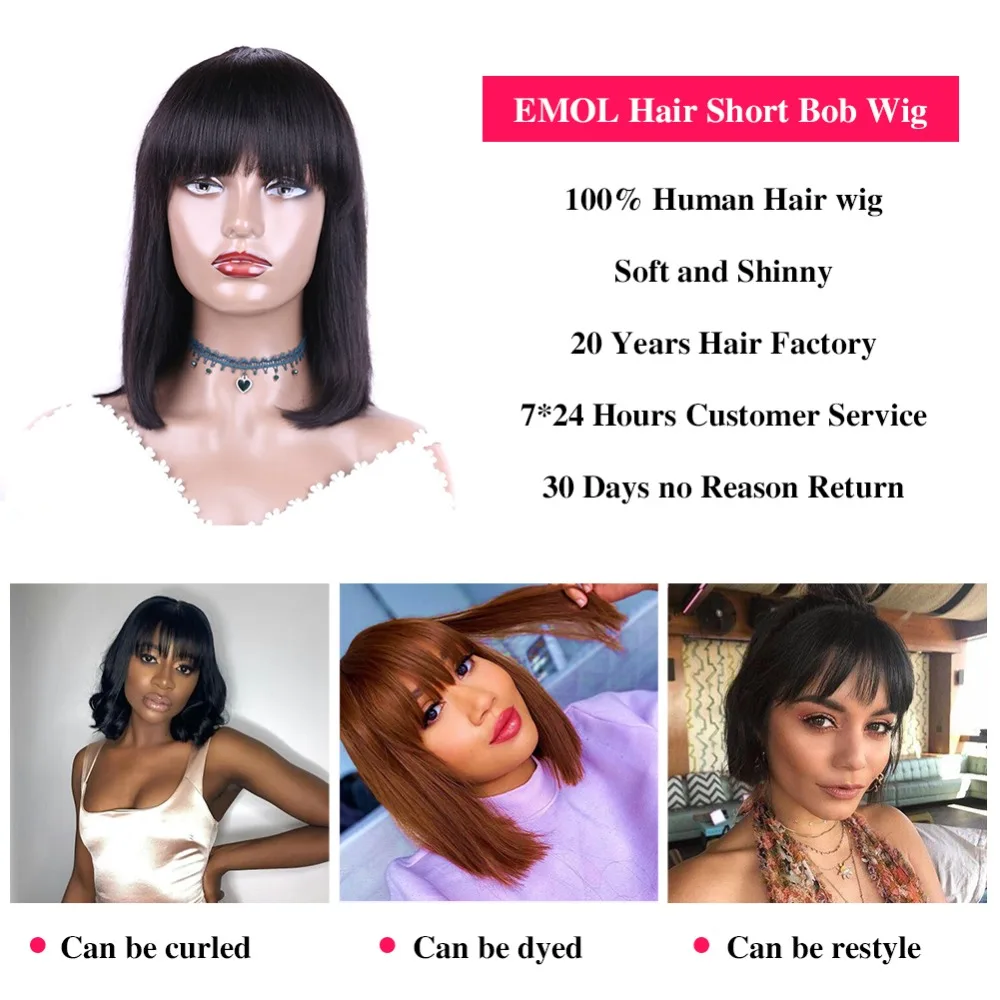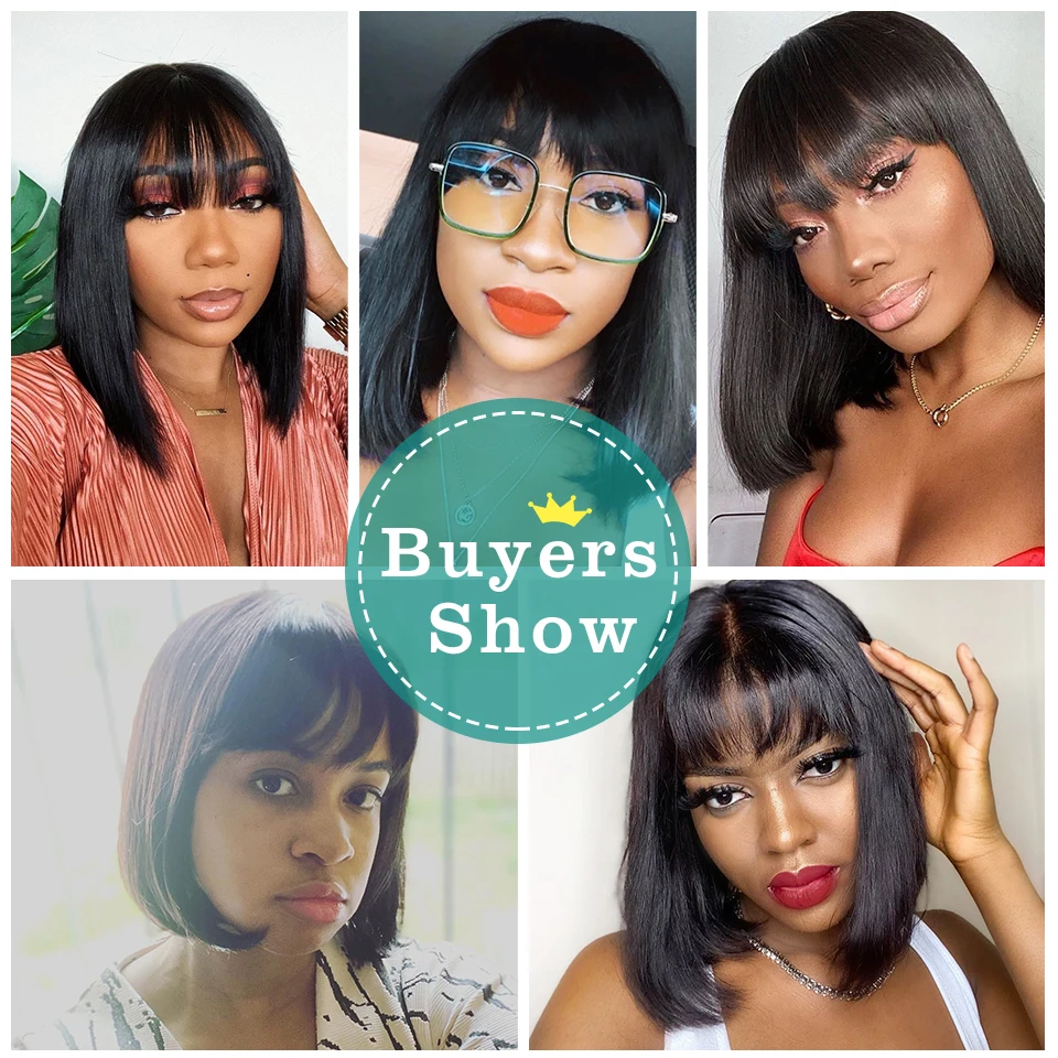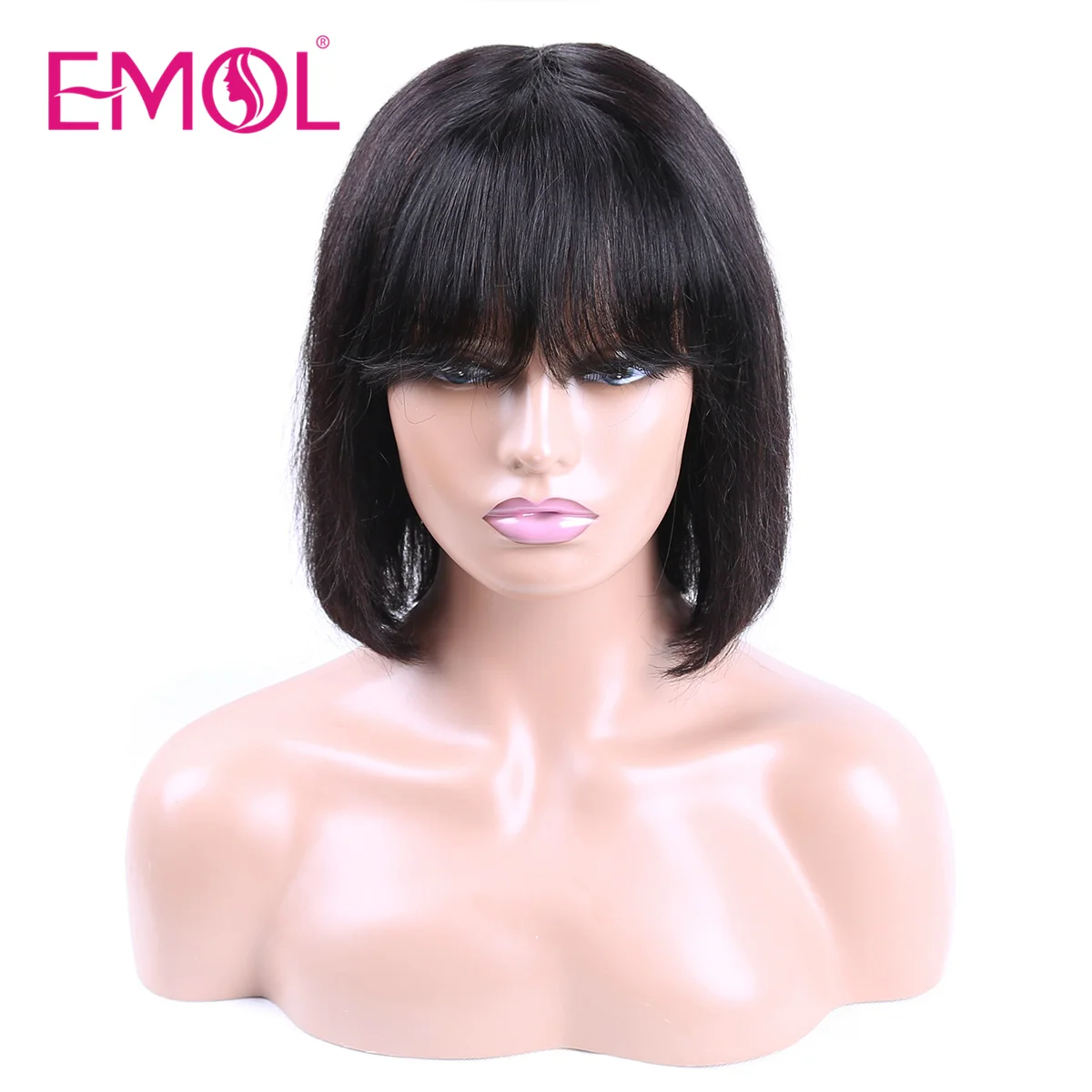 Парик короткий боб с челкой, прямые бразильские парики из натуральных волос Реми, полностью машинное изготовление, Короткие парики боб для женщин, оптовая продажа
