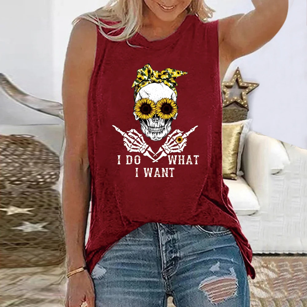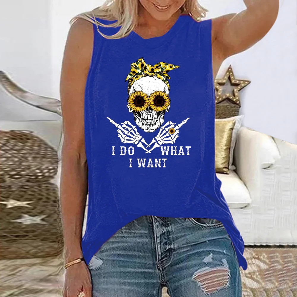 Забавная женская футболка Seeyoushy я делаю то, что хочу, с принтом черепа подсолнуха, топы с круглым вырезом, летняя Свободная футболка без рукавов для женщин
