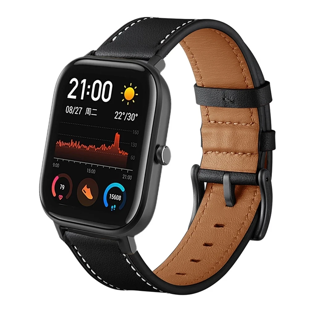 Ремешок кожаный для Amazfit GTS, ремешок из натуральной кожи для Huami Amazfit Bip GTR 47 мм GTS Pace Stratos, браслет 2022 мм