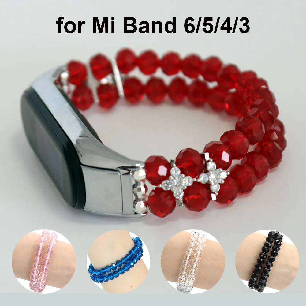 Браслет с красными кристаллами для Xiaomi Mi Band 5 6, браслет с NFC, Роскошные ювелирные украшения, сменный ремешок с бусинами для MiBand 34, ремешок для женщин и девушек