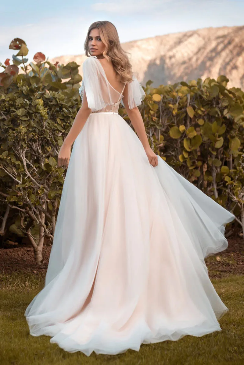 Платье LORIE свадебное с V-образным вырезом, Пляжное фатиновое с от...