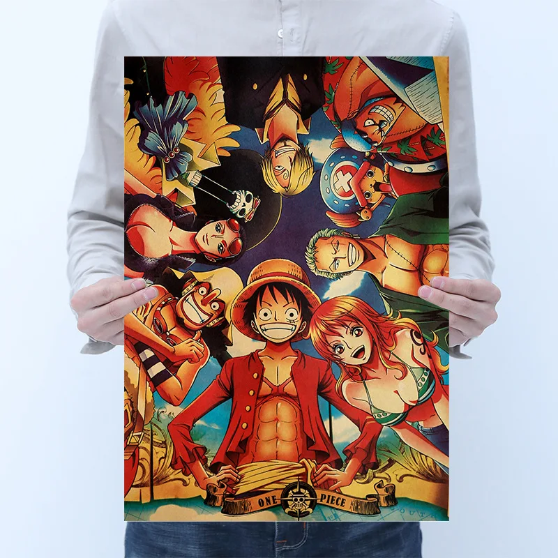 Художественный ретро-постер Луффи в стиле аниме, картина из крафт-бумаги, Постер и принты, настенное украшение для дома, детской комнаты, декор для стен