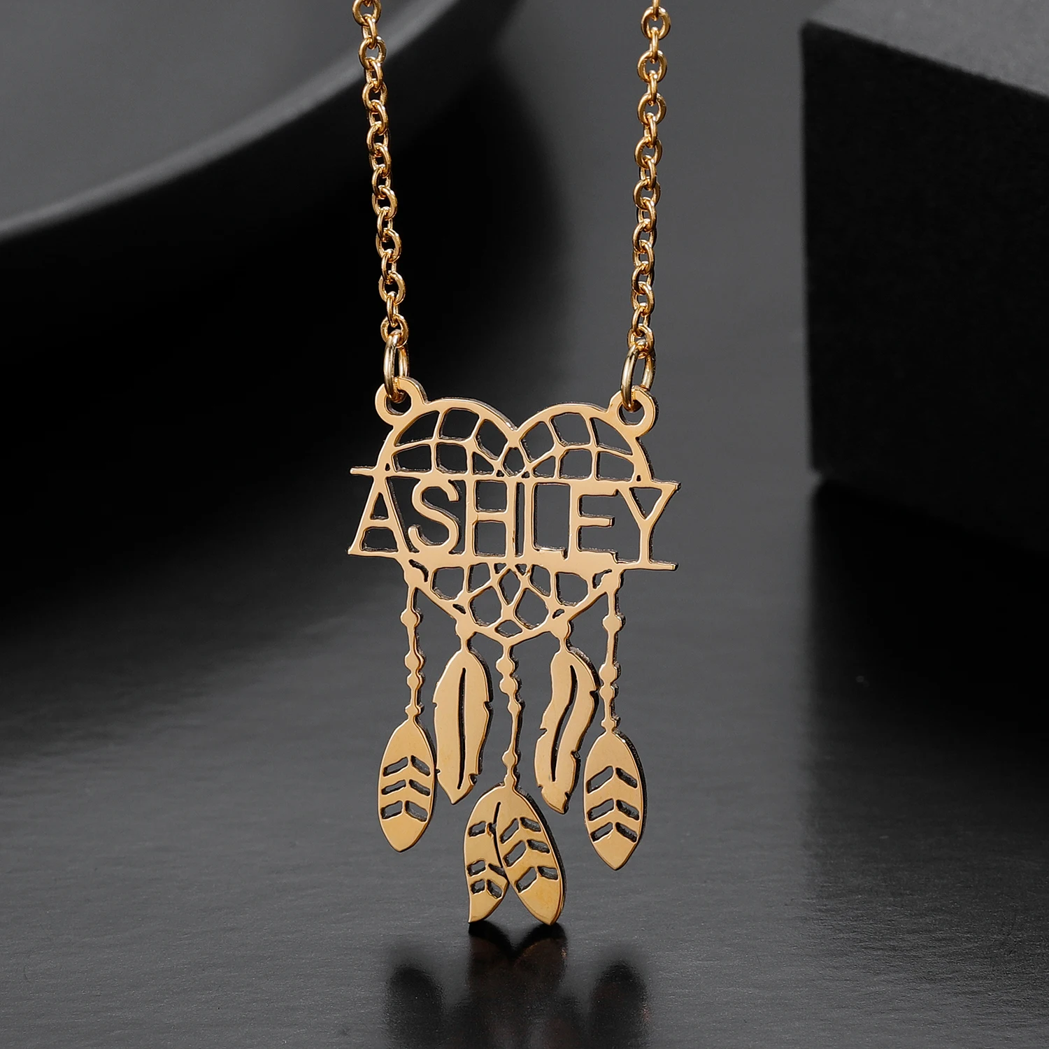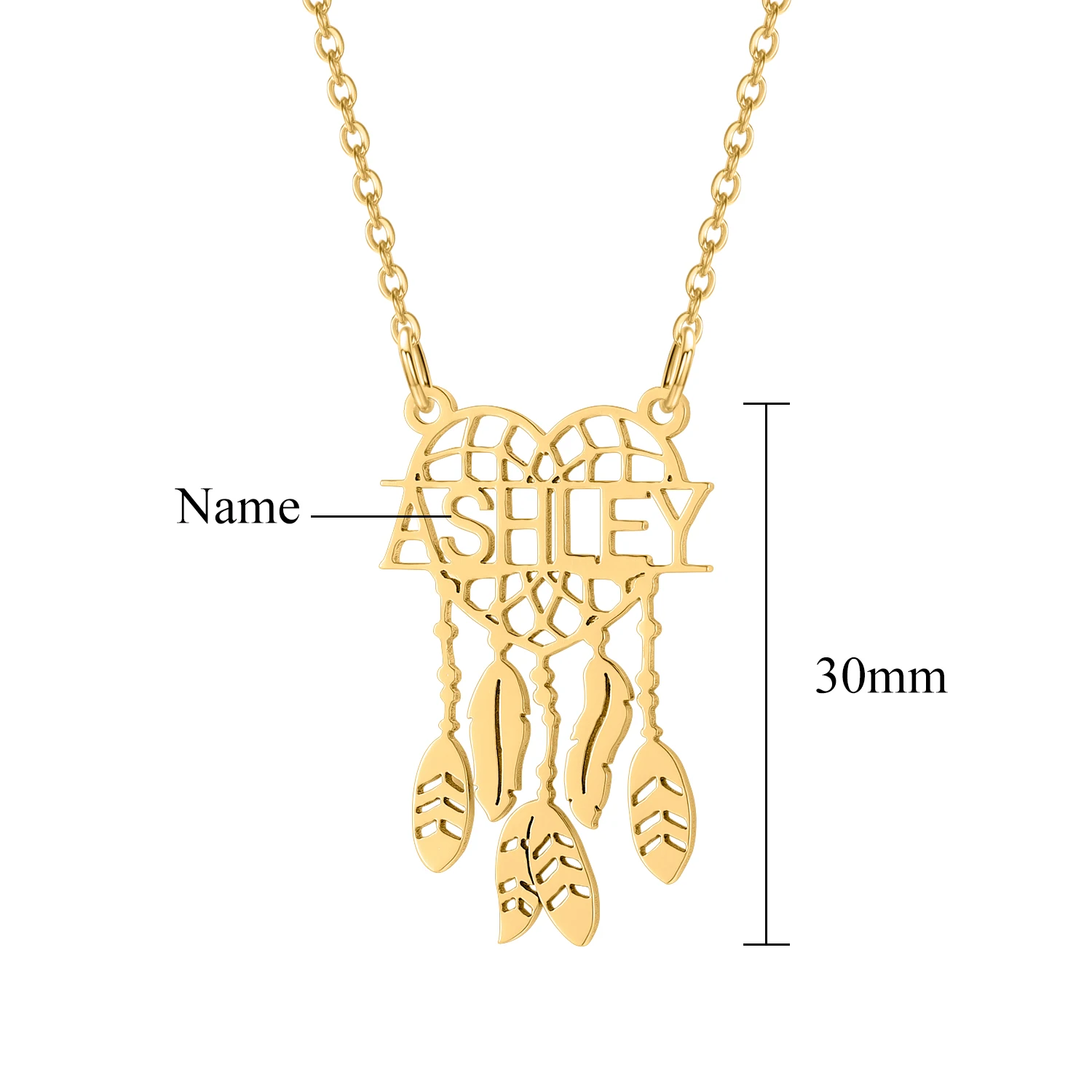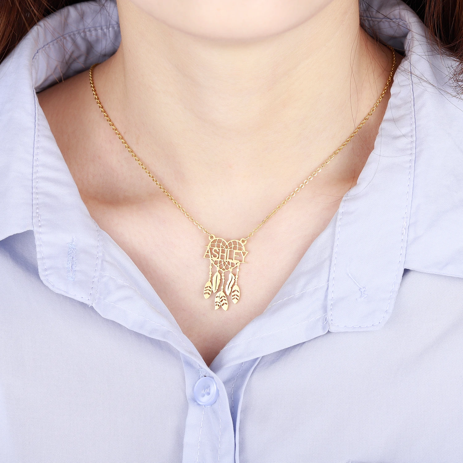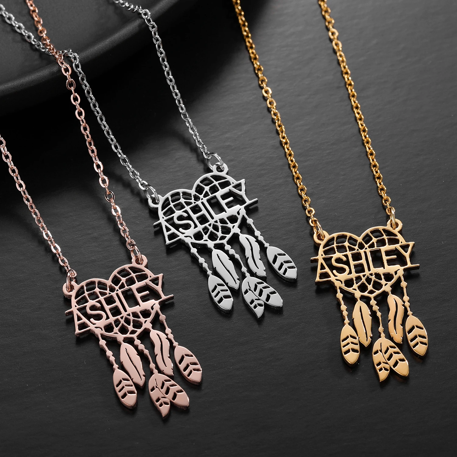 Ожерелье с именем Ловец снов на заказ, из нержавеющей стали, индийская мандала, лотос, кулон для женщин, богемное этническое ожерелье