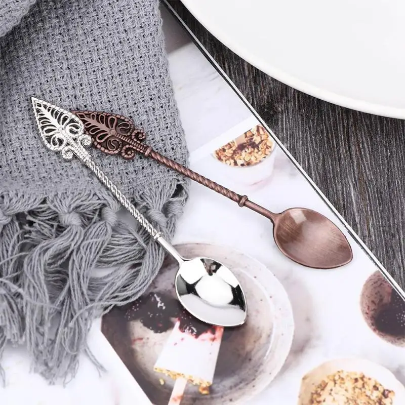 1 шт., мини королевские стильные ложки, вилки, винтажные металлические резные кофейные фруктовые десертные столовые приборы, вилка, чайная ложка для мороженого, кухонные столовые приборыОписание: