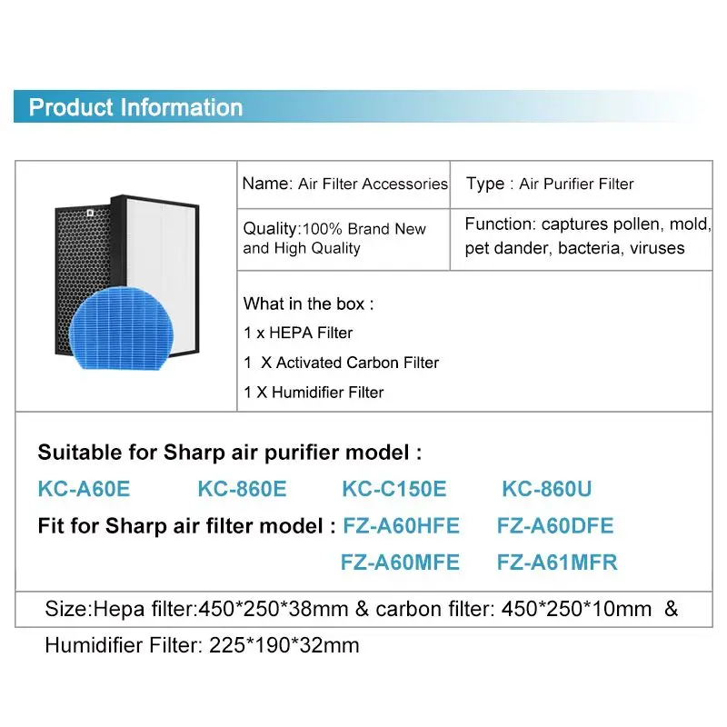 Sharp KC-A60E KC-860E KC-C150E KC-860U HEPA фильтр угольный фильтр-увлажнитель FZ-A60HFE FZ-A60DFE FZ-A60MFE