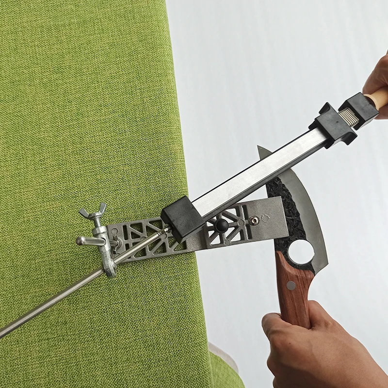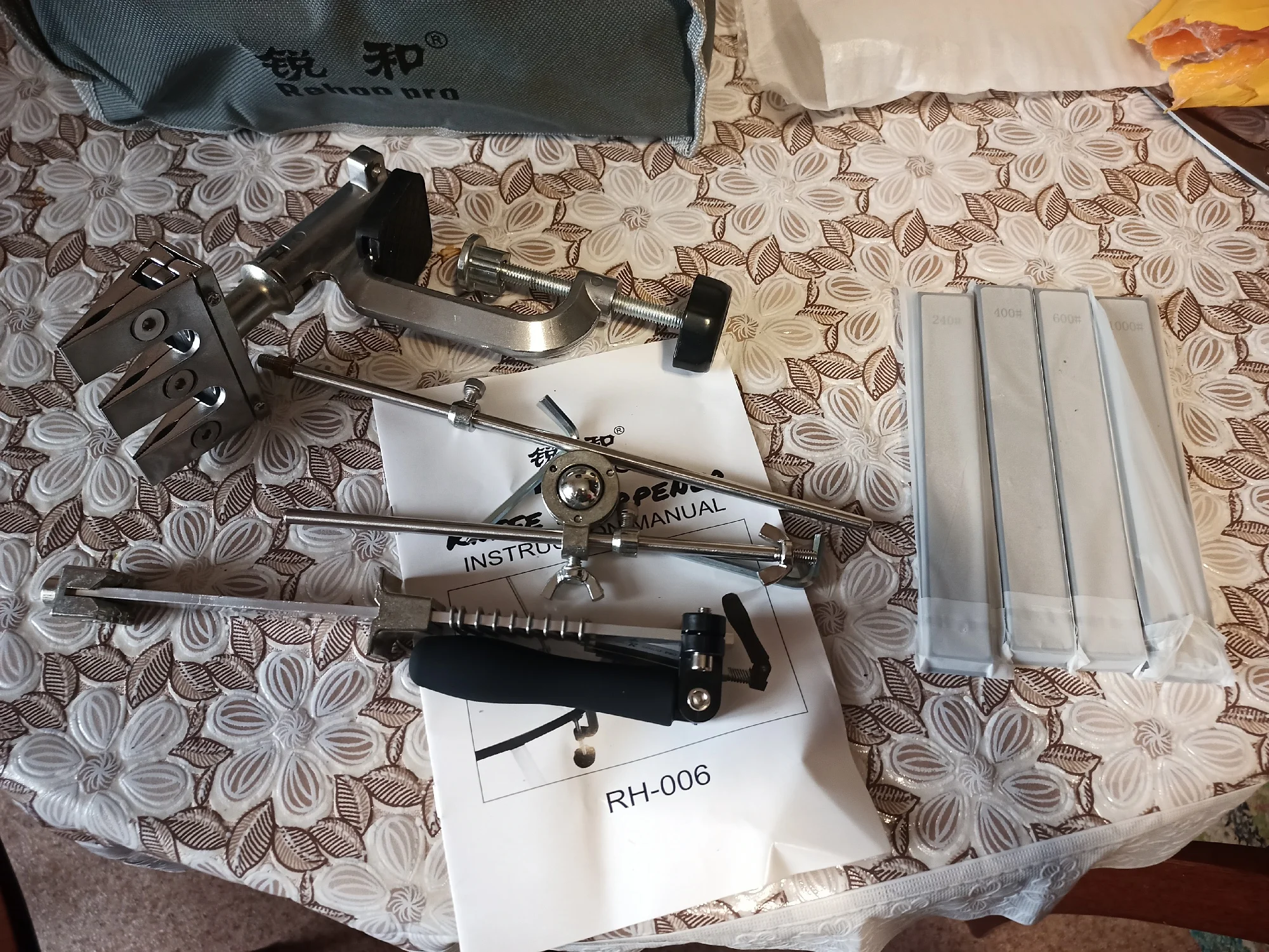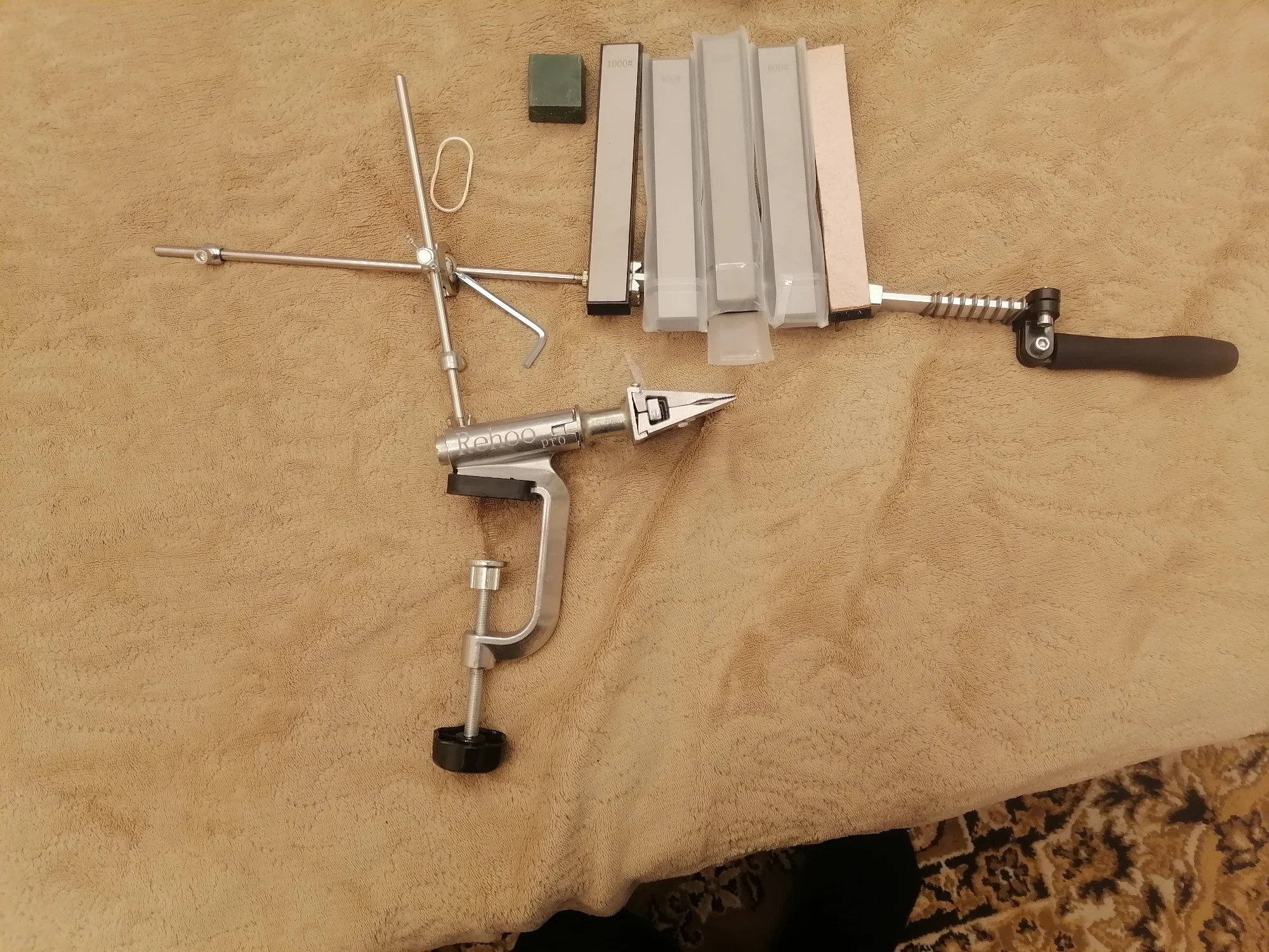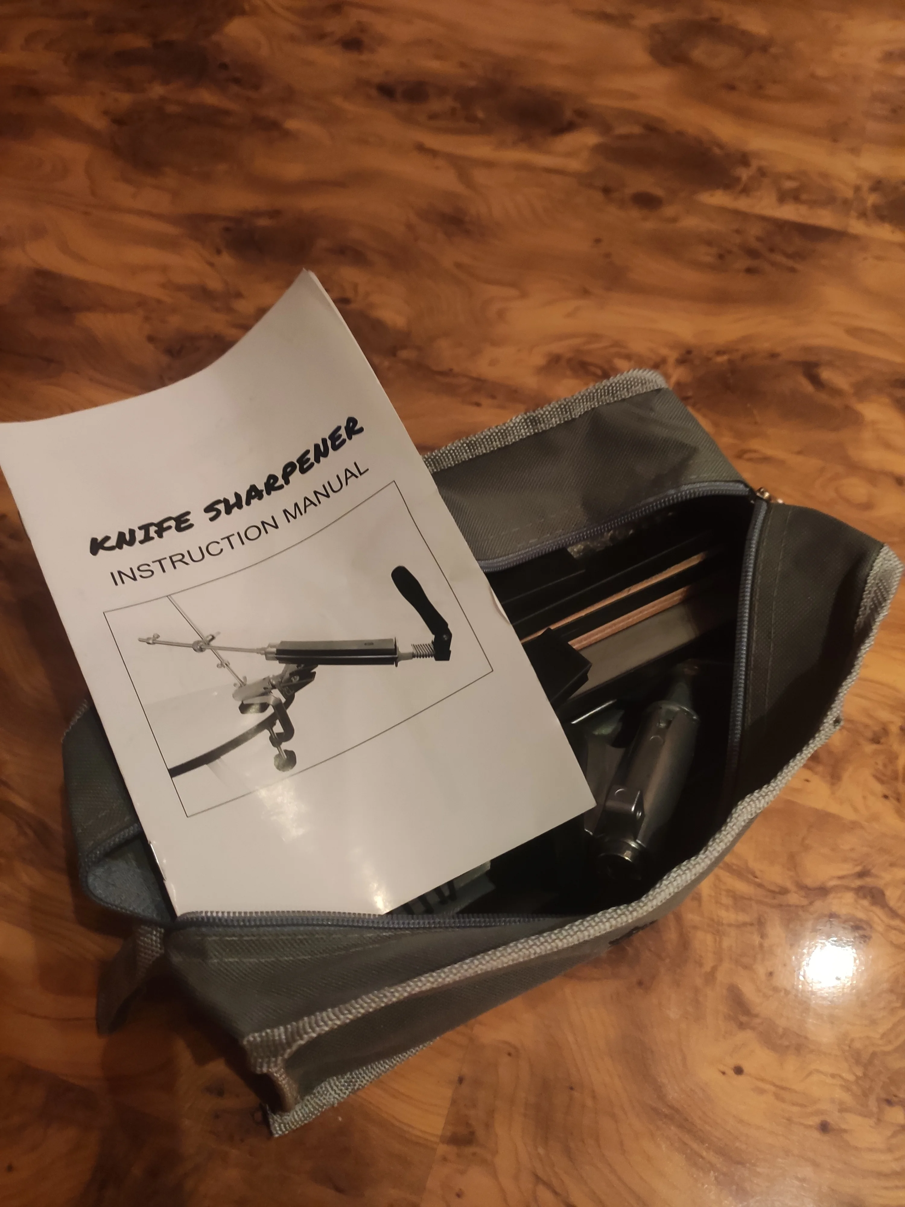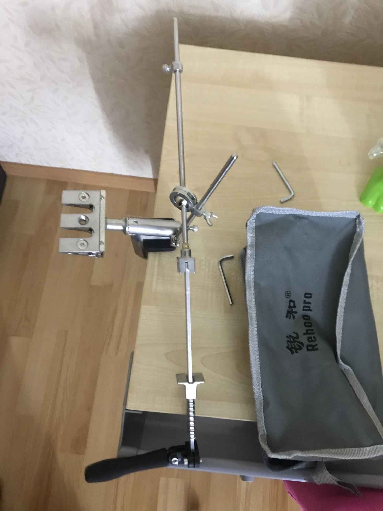 Точилка отличная за свои деньги. Для дома вполне достаточно. Есть небольшие люфты, но некритично. В комплекте брал алмазные бруски. Ножик заточил за пару минут буквально. Кромка ровная. Единственное, что, можно было бы нанести шкалу в градусах на стойку, чтобы не мучиться и выставлять угол каждый раз заново. И инструкция без русского перевода.