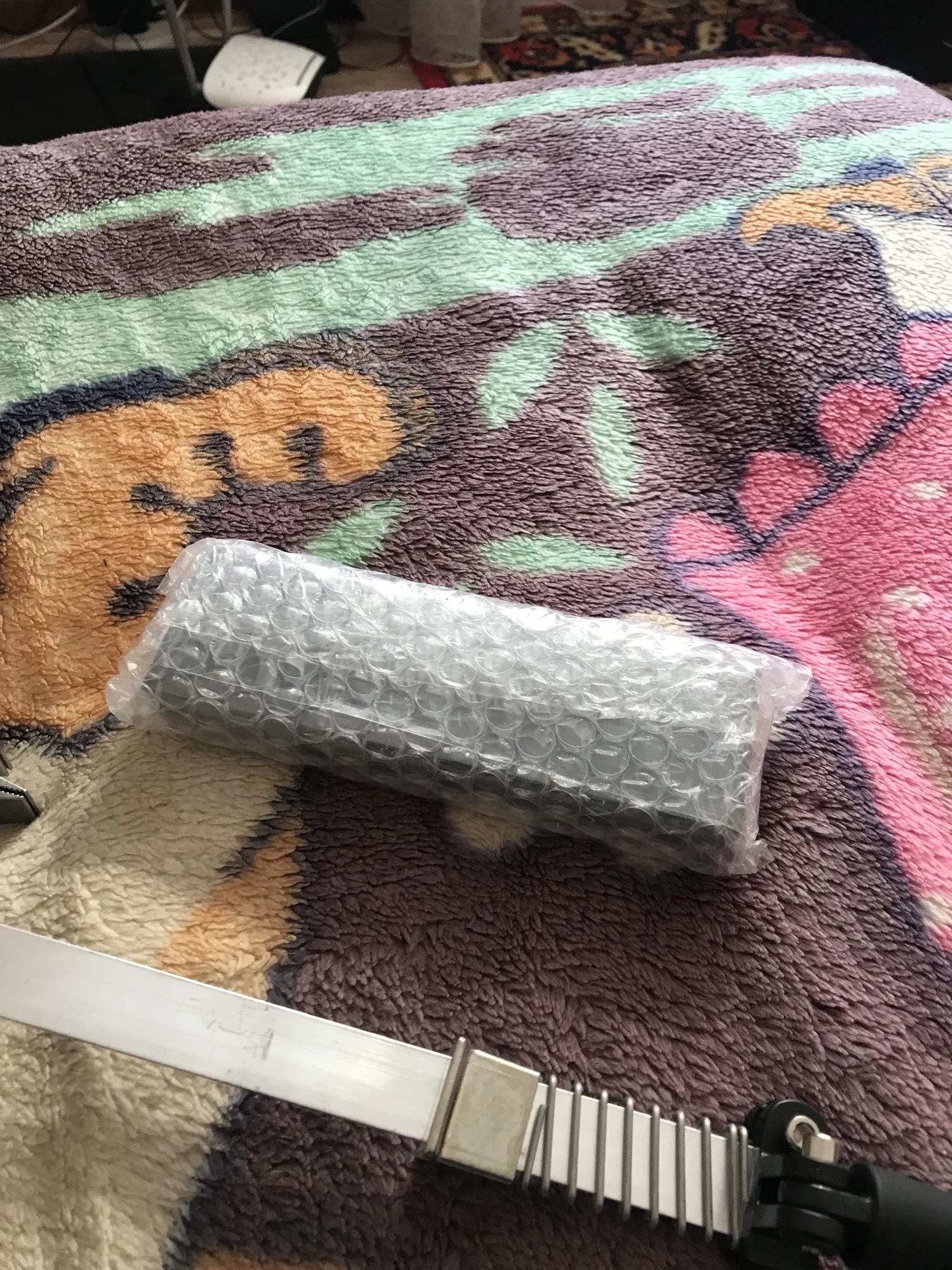 Пришло со сломанной ручкой, благо не особо она и нужна. На втором ноже отклеился камень от подложки.
