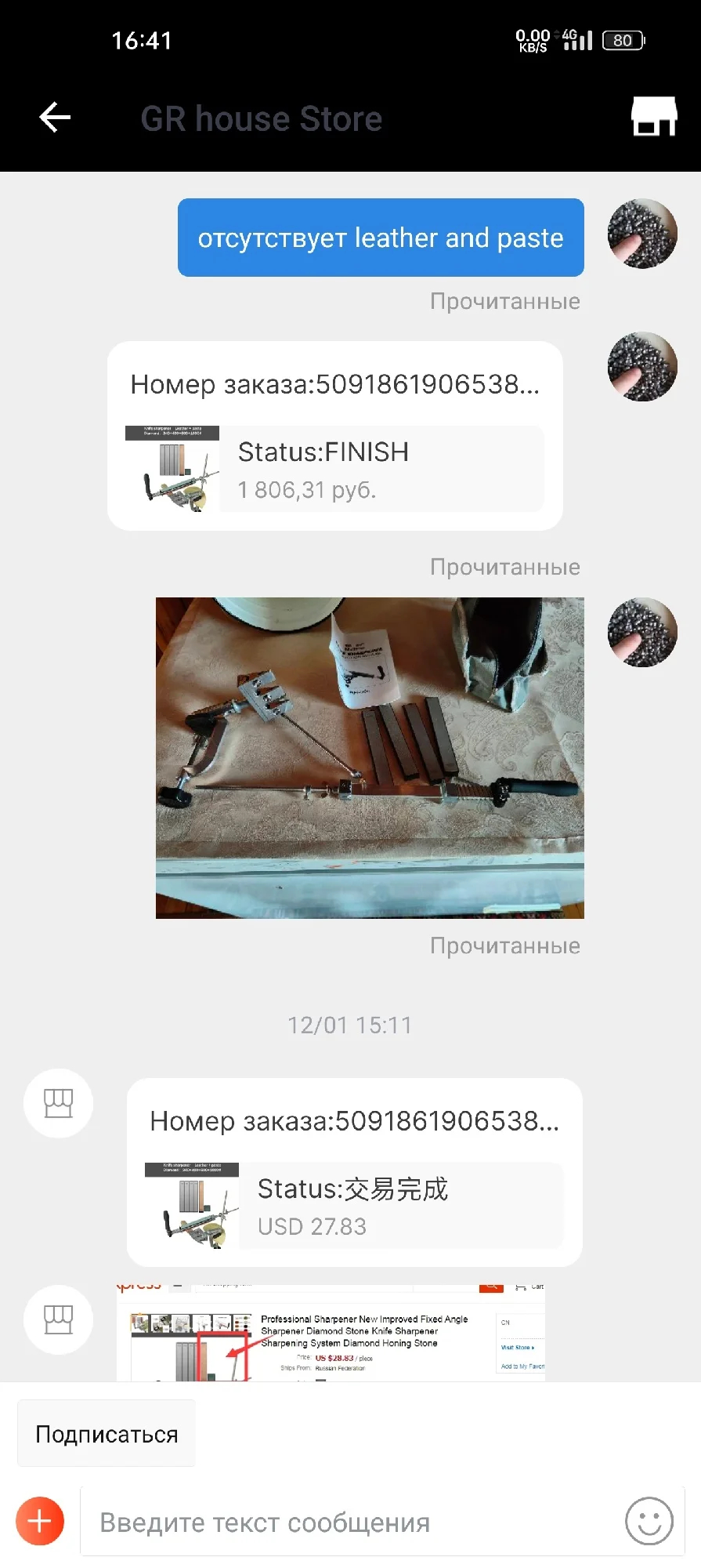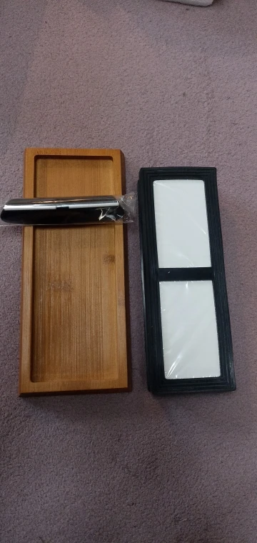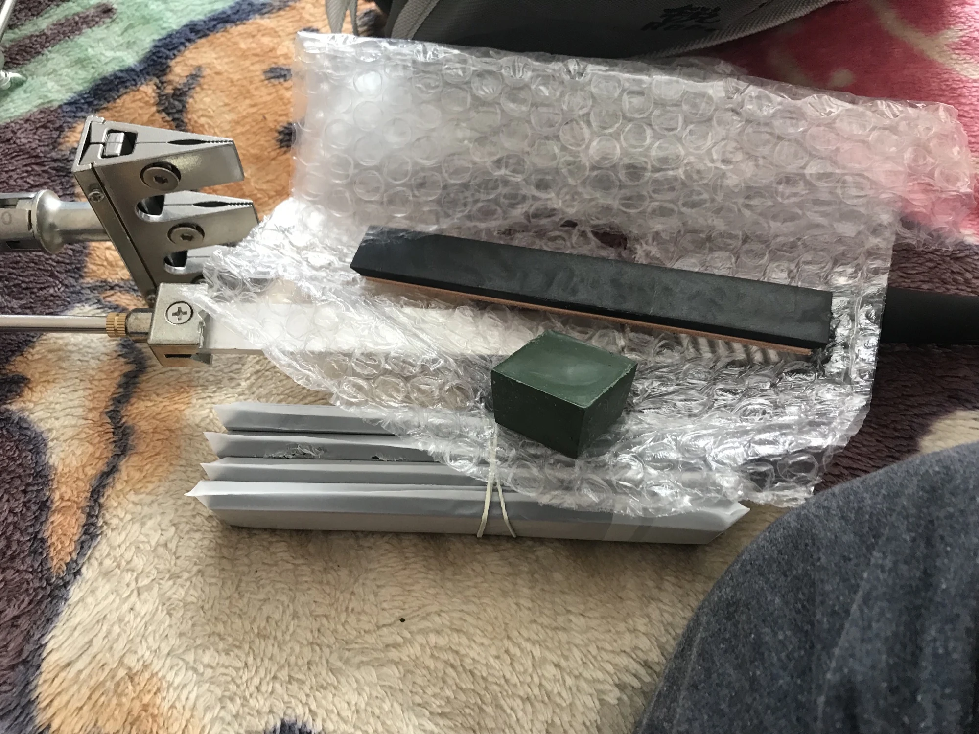 Товар пришол ещё перед новым годом без точильный брусков, просто точилка. Открыл спор, продавцу предоставил все подтверждения, все документы. Он предложил отправить камни из Китая. Я согласился и закрыл спор. Шли полтора месяца почти. Вчера 13 февраля они пришли. Открываю посылку там ещё одна точилка и камни алмазные, камень для пасты гои и сама паста. Ещё должны быть камни водные, обычные. Но возможно, по ошибки вместо них положили точилку. Я не расстроился. Запасная будет.