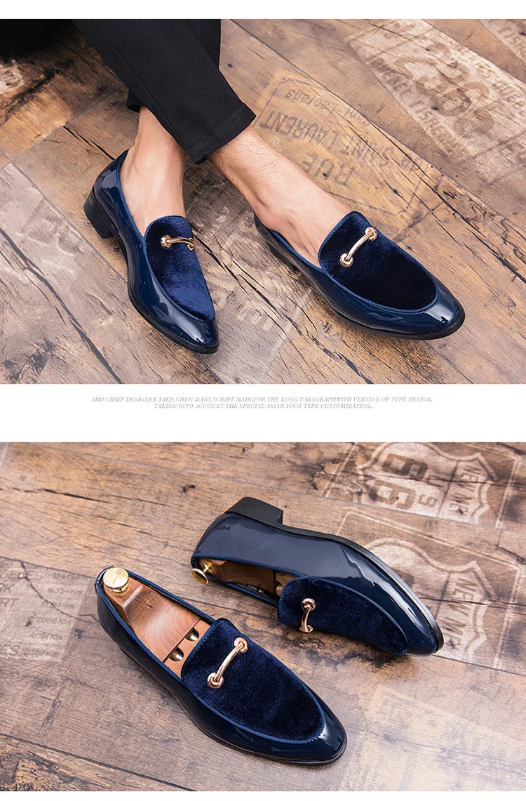 Туфли мужские из лакированной кожи, без застежки, в итальянском стиле