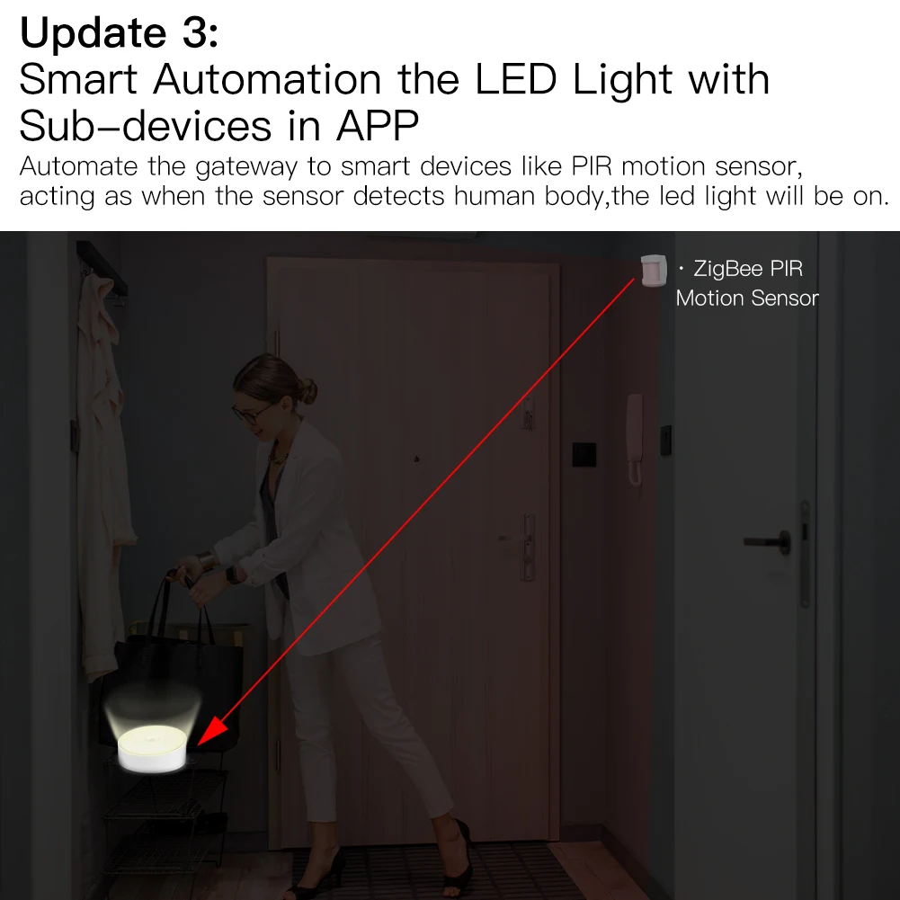 Автоматизируйте шлюз к смарт-устройствам, таким как датчик движения PIR, действуя так, как когда датчик обнаруживает тело человека, светодиодный светильник будет включен.