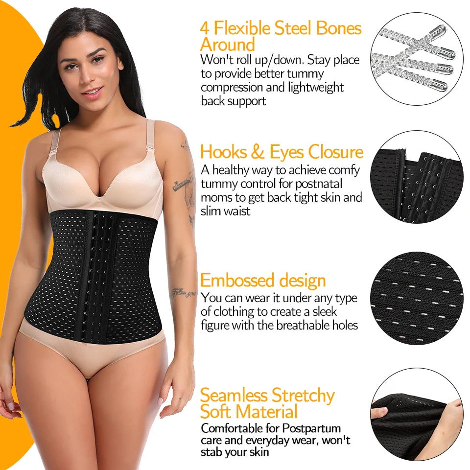 4 стальных косточки обеспечивают дополнительную поддержку живота/спины и уменьшают талию, помогая облегчить боль в спине и улучшить осанку