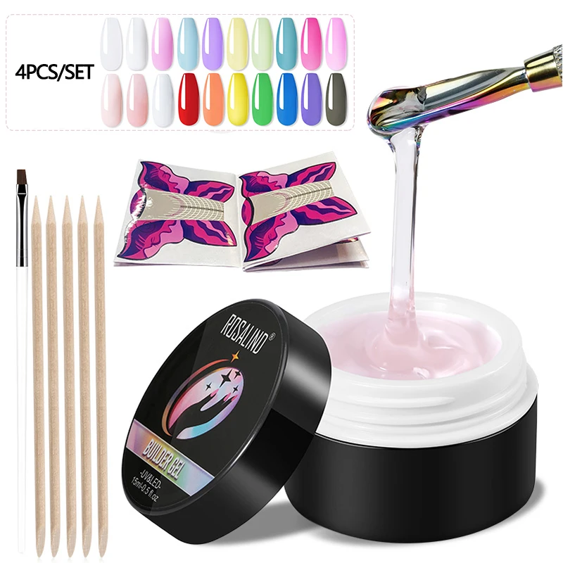 Набор акриловых гель-лаков ROSALIND, 4 шт. для наращивания ногтей, удаляется замачиванием, Полуперманентная УФ-лампа, белые, прозрачные полимерные Наборы инструментов для ногтей