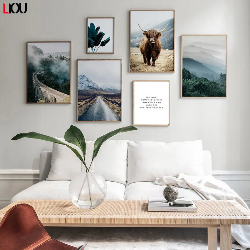Настенный постер в скандинавском стиле, рисунок на холсте с природным пейзажем, корова, туман, лес, декоративное украшение для дома