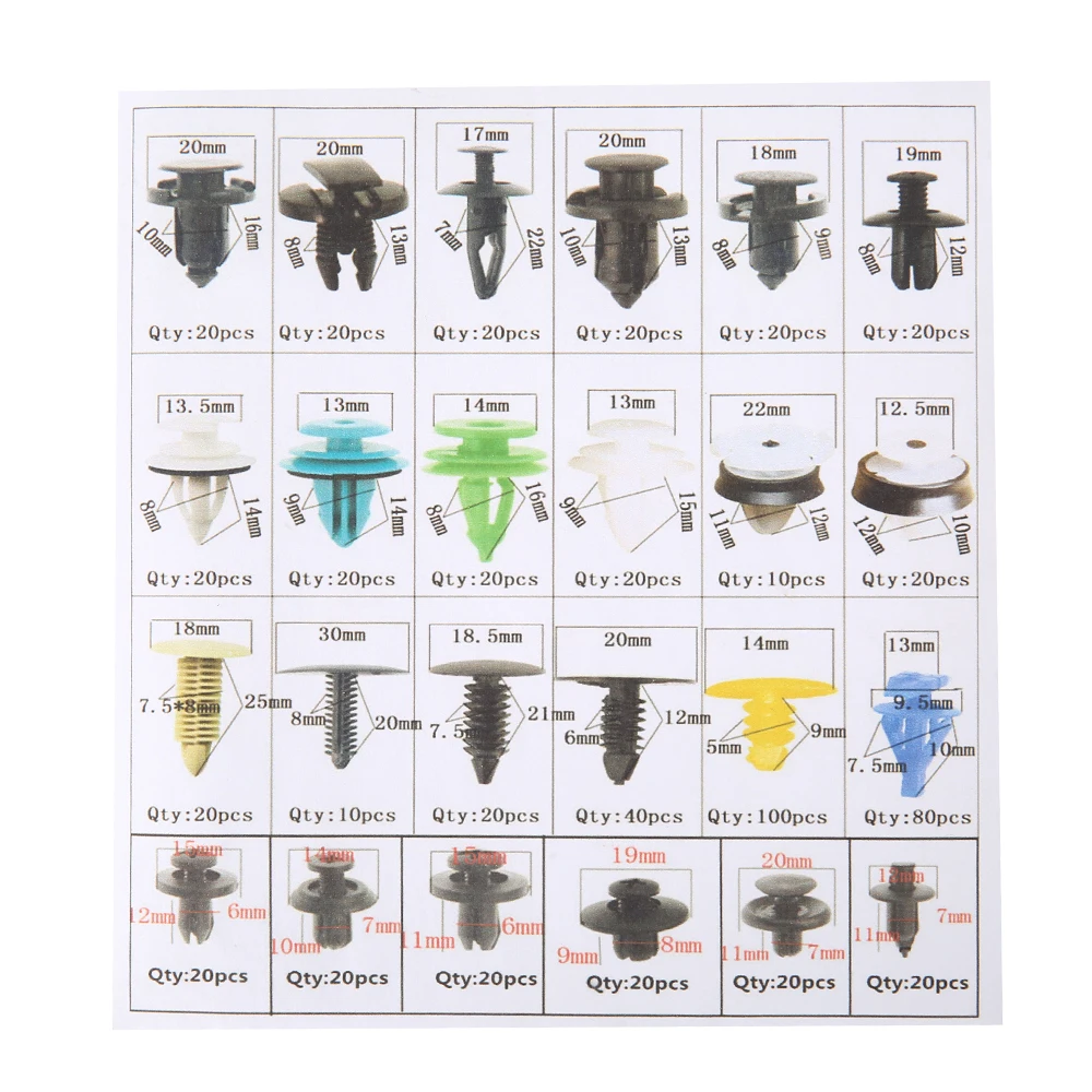 620 шт.кор. клипсы для крепления автомобиля, фиксатор для отделки двери, панели, бампера, автомобиля, фиксатор с заклепками, смешанный фиксатор для кузова автомобиля, крепление с зажимом
