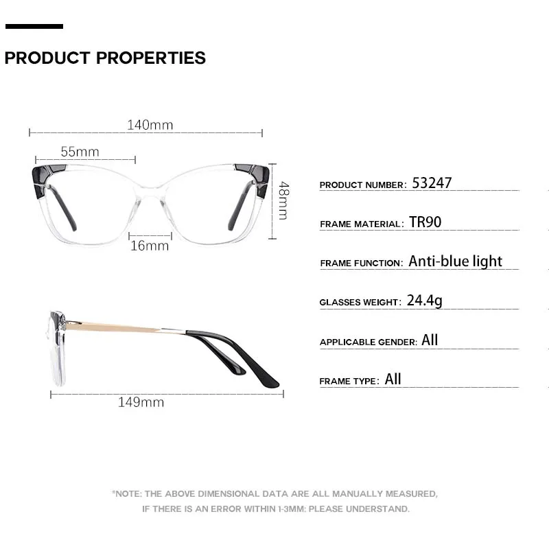 53247 женские очки кошачий глаз с металлическими дужками, декоративные Модные женские компьютерные очки