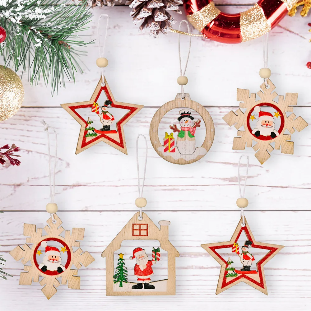 12 шт. деревянные рождественские украшения, Санта-Клаус, снежинка д...