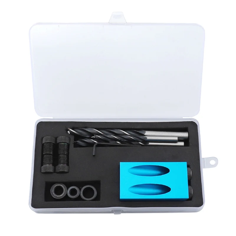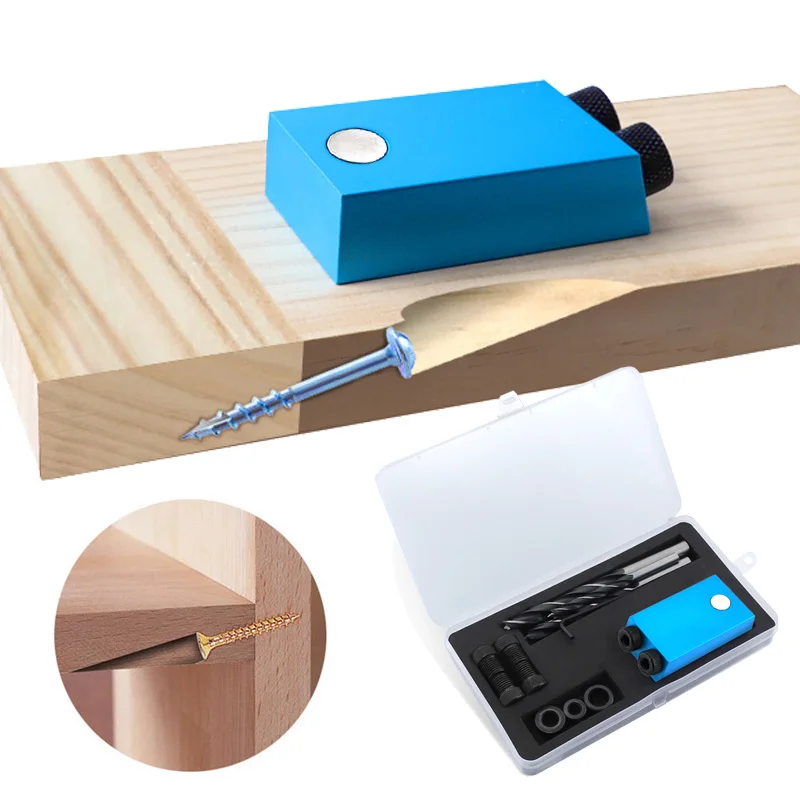 Набор зажимов для карманного отверстия поможет вам точно сделать наклонные отверстия 15 градусов и завершить Сращивание различных мебельных панелей.