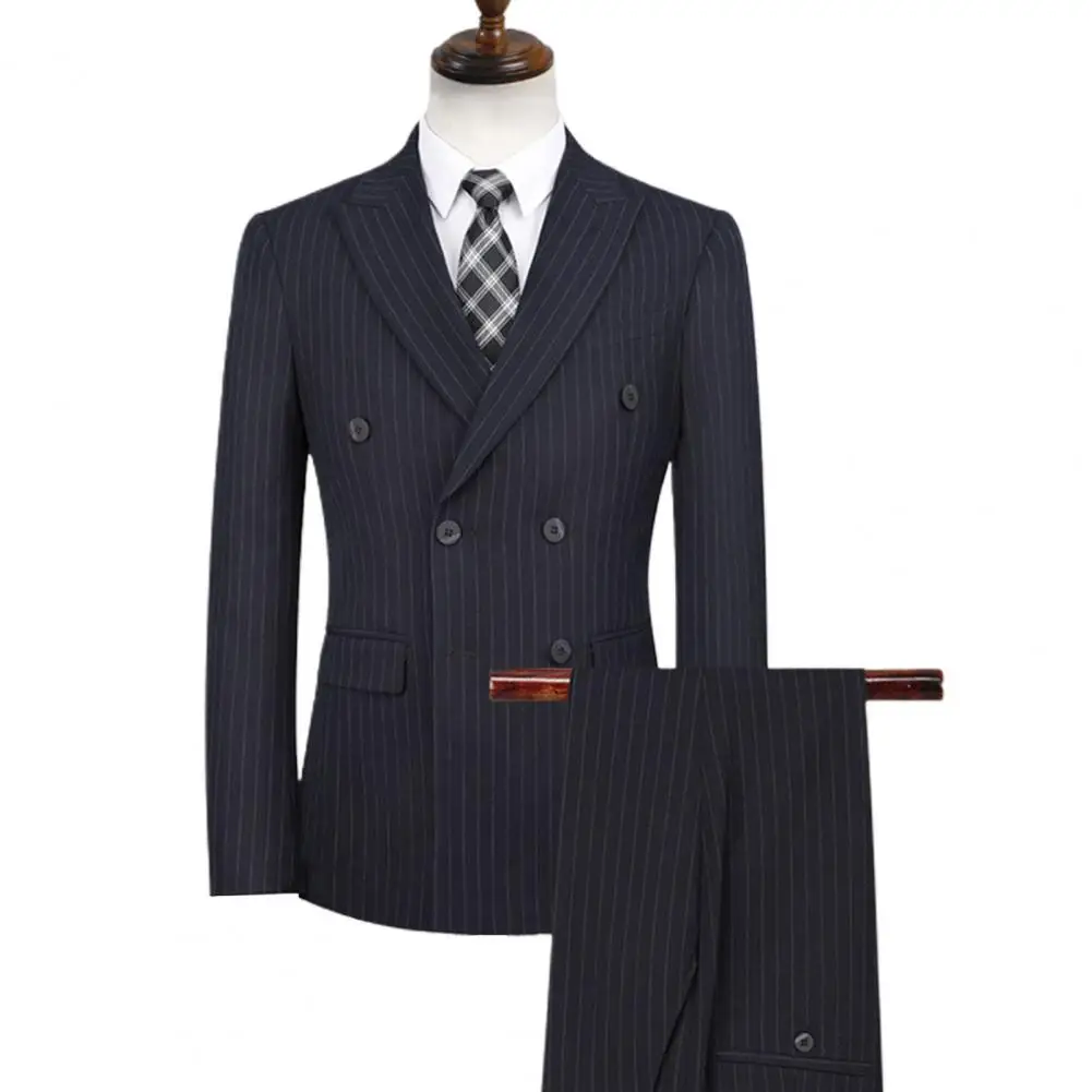 Мужской комплект из двух предметов, двубортный официальный блейзер и брюки в полоску с лацканами для свадьбы, 50%