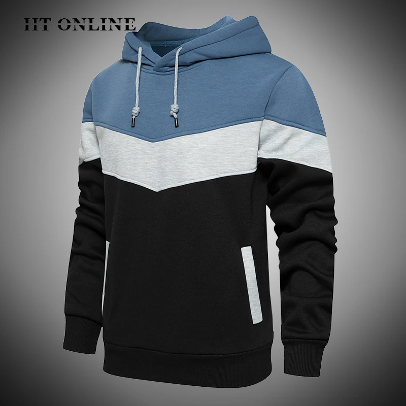Мужская толстовка с капюшоном, синяя Повседневная Толстовка с капюшоном, мужской модный осенний Свободный пуловер, топы в стиле хип-хоп, Мужская толстовка в стиле пэчворк, европейский размер, 2022