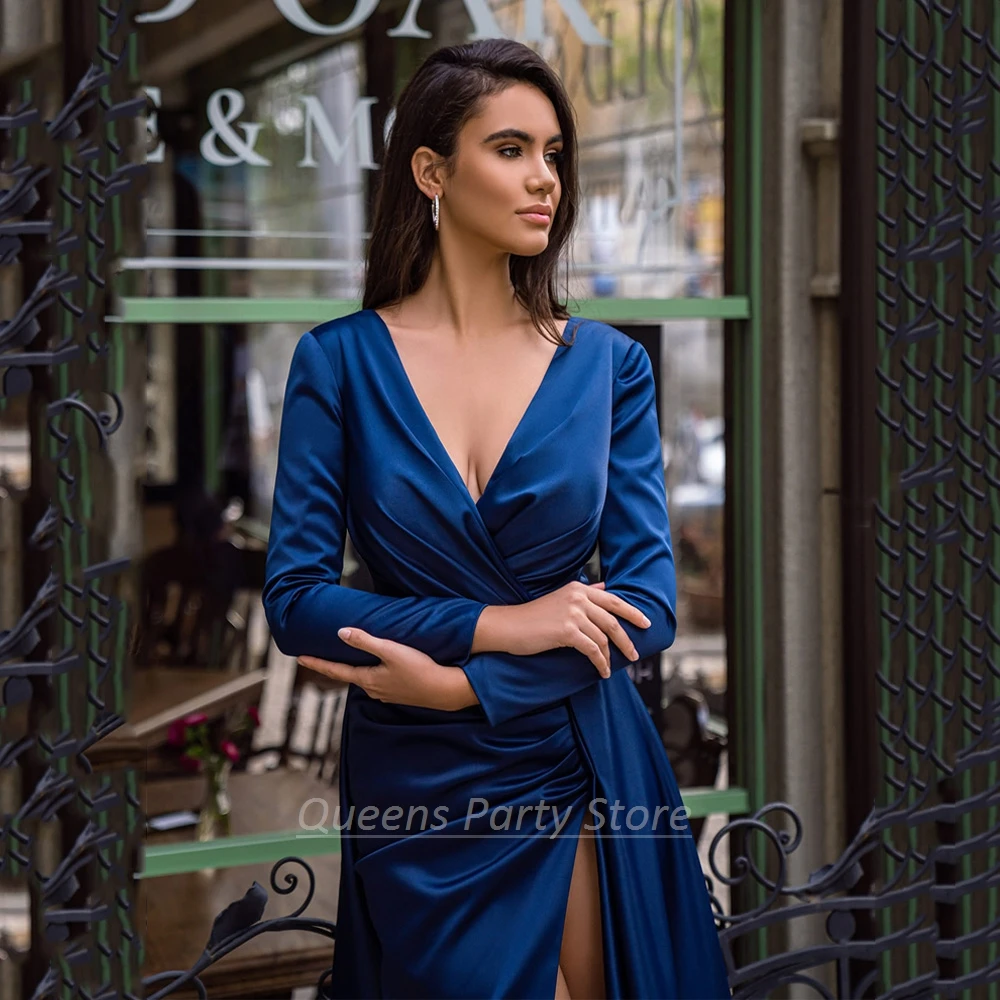 Женское платье с длинным рукавом, V-образным вырезом и рюшами