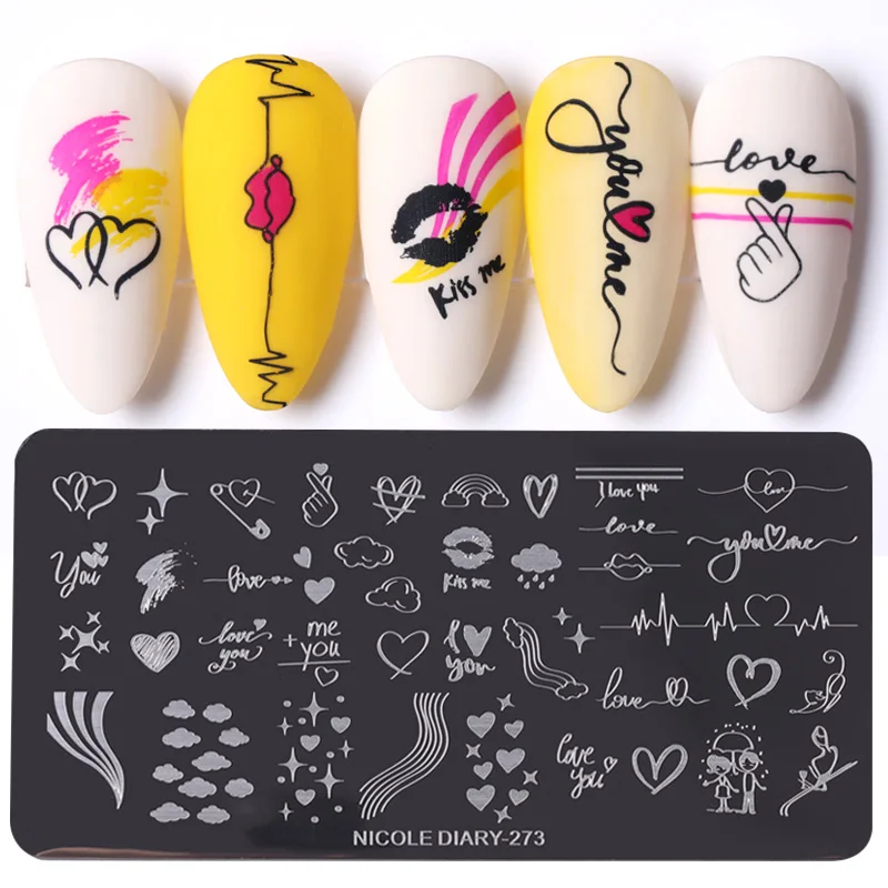 Трафареты NICOLE DIARY для маникюра, пластины для штамповки сердцебиения, губ, маникюра, инструменты для ногтей