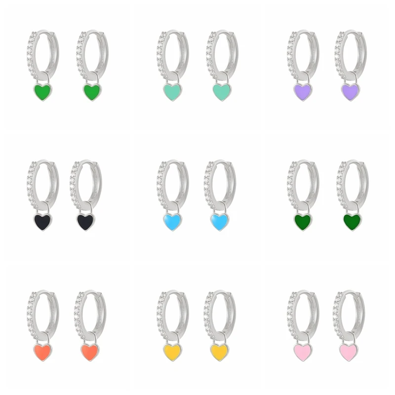 Женские Серьги-обручи BOAKO, Серьги из стерлингового серебра 925 пробы с цирконием в форме сердца и эмалью, тренд 2021 года, ювелирное изделие, подарок 84890