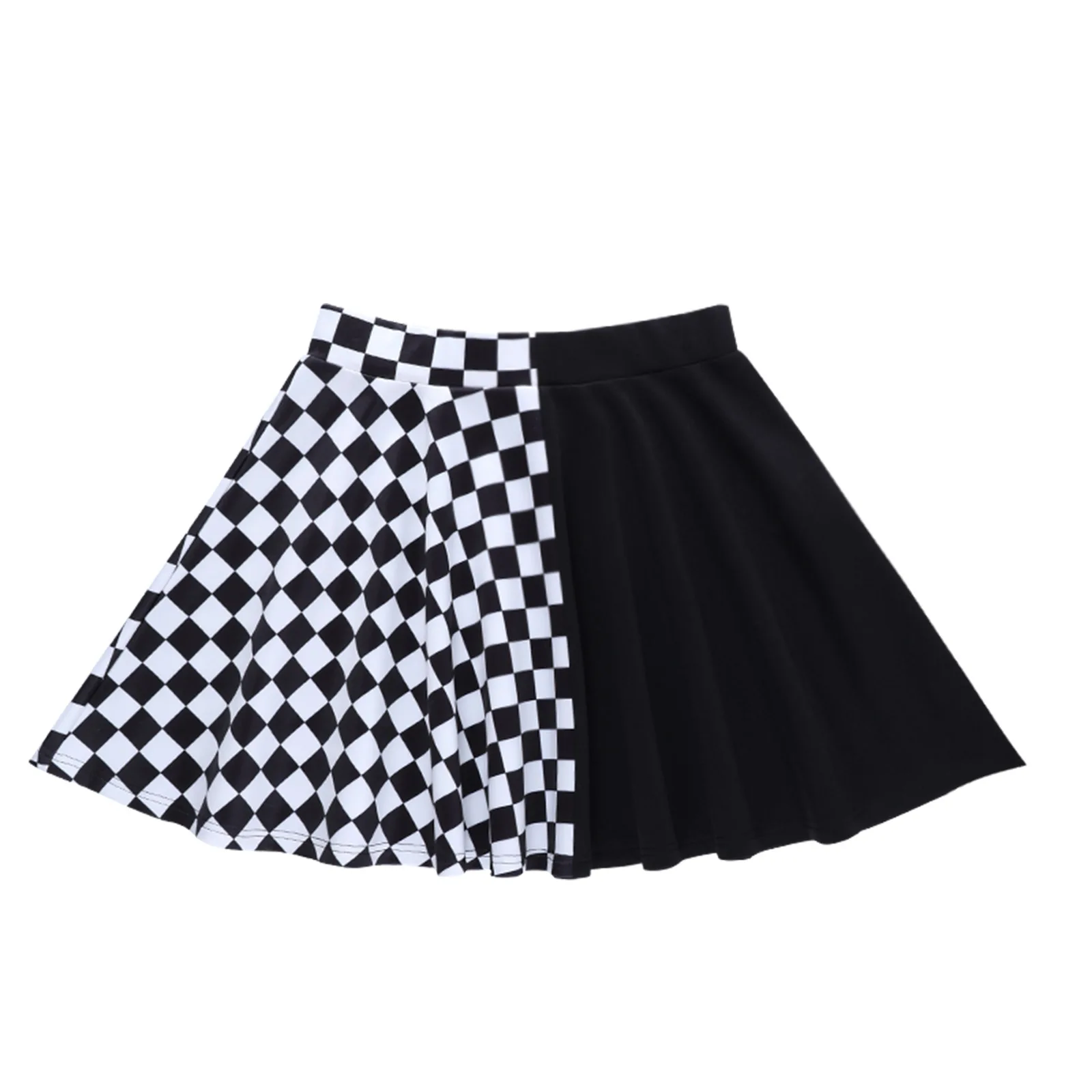 Женская мини-юбка фигуристки, повседневная Шахматная юбка с высокой талией и цветным принтом, расклешенная юбка