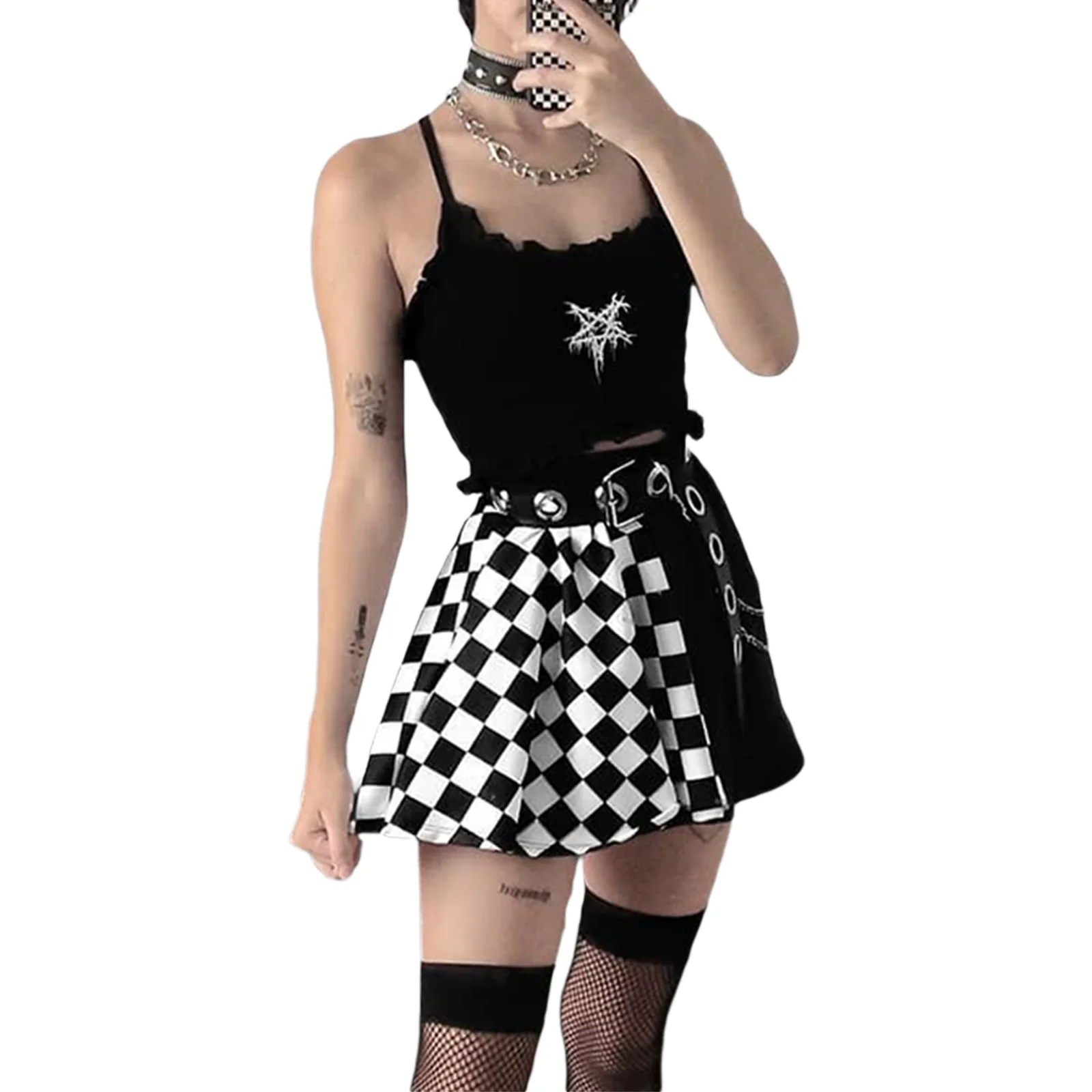 Женская плиссированная юбка в готическом стиле, короткая клетчатая ...