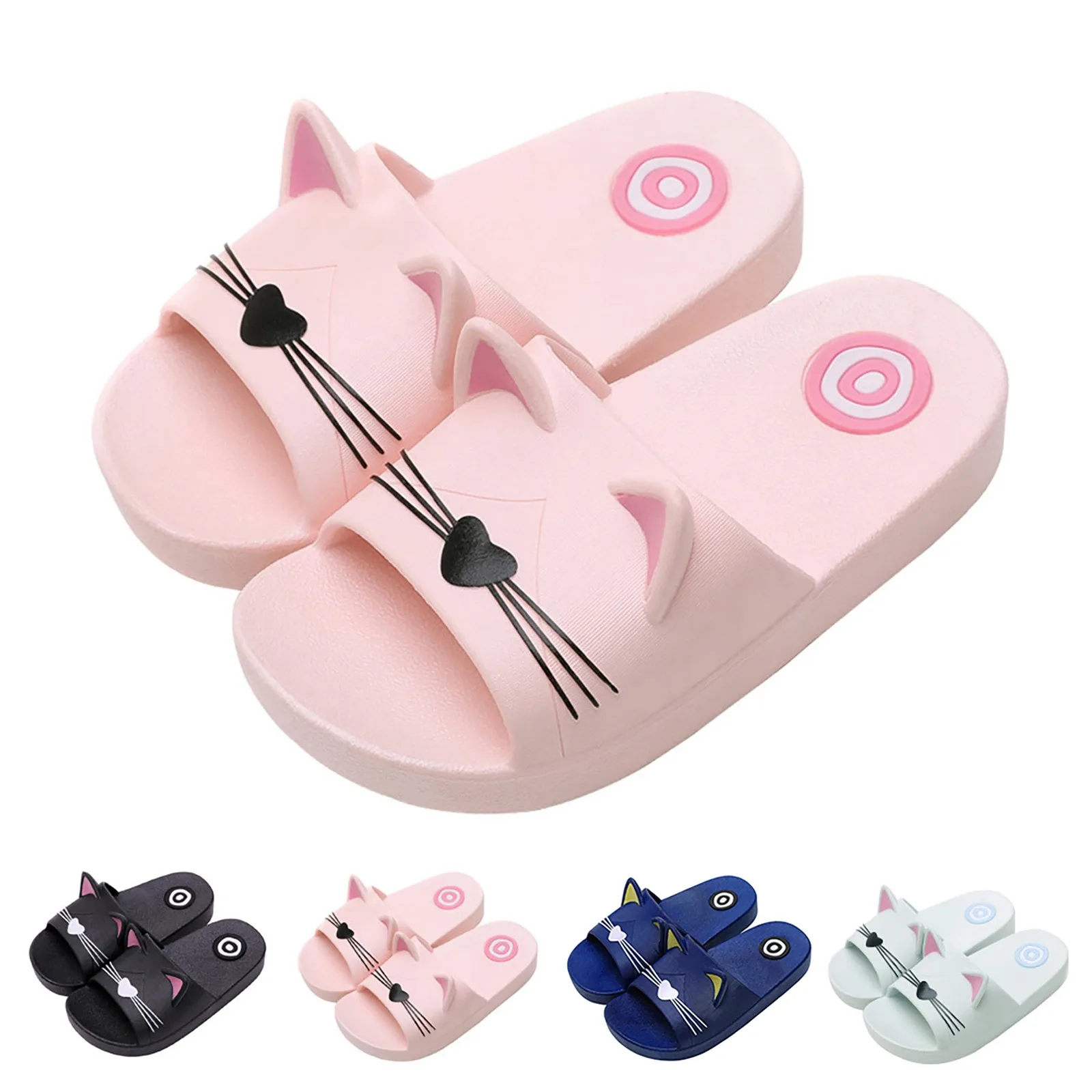 Шлепанцы для детей и мальчиков, Нескользящие, летняя пляжная обувь, симпатичный мультяшный Кот, для пола, семейные тапочки, 2021