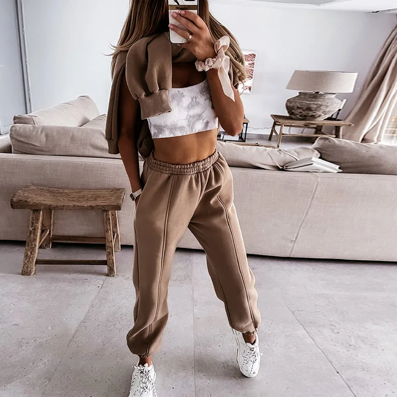 Спортивные костюмы, женские флисовые толстовки, комплект из двух предметов, весна-осень 2021, комплекты со шнуровкой и штанами, женские повседневные спортивные костюмы