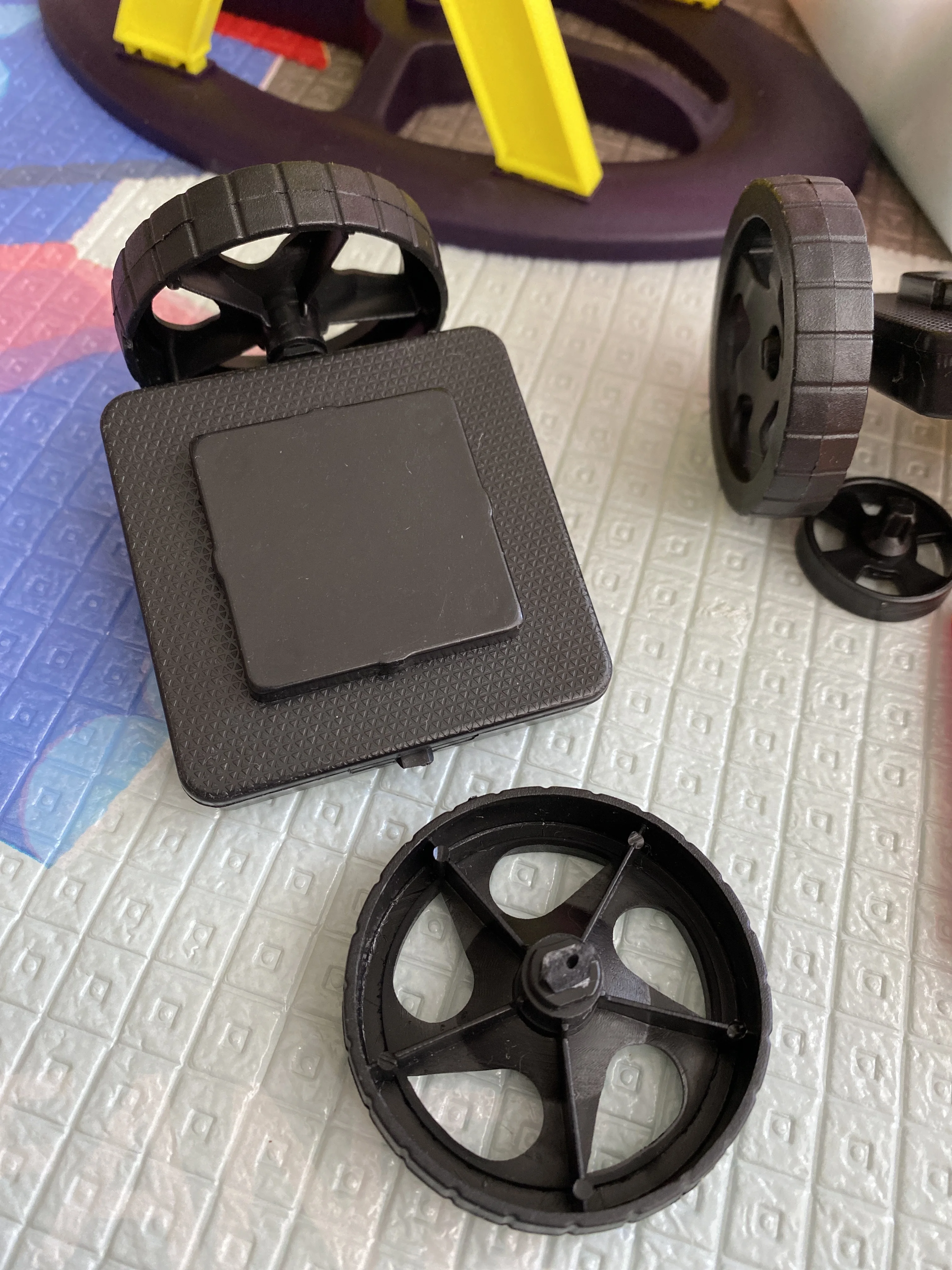 Колеса которые идут в наборе, просто кусок пластика, детали к ним никак не крепятся, сами детали не очень качественные и меньше размером в сравнении с наборами других производителей.
