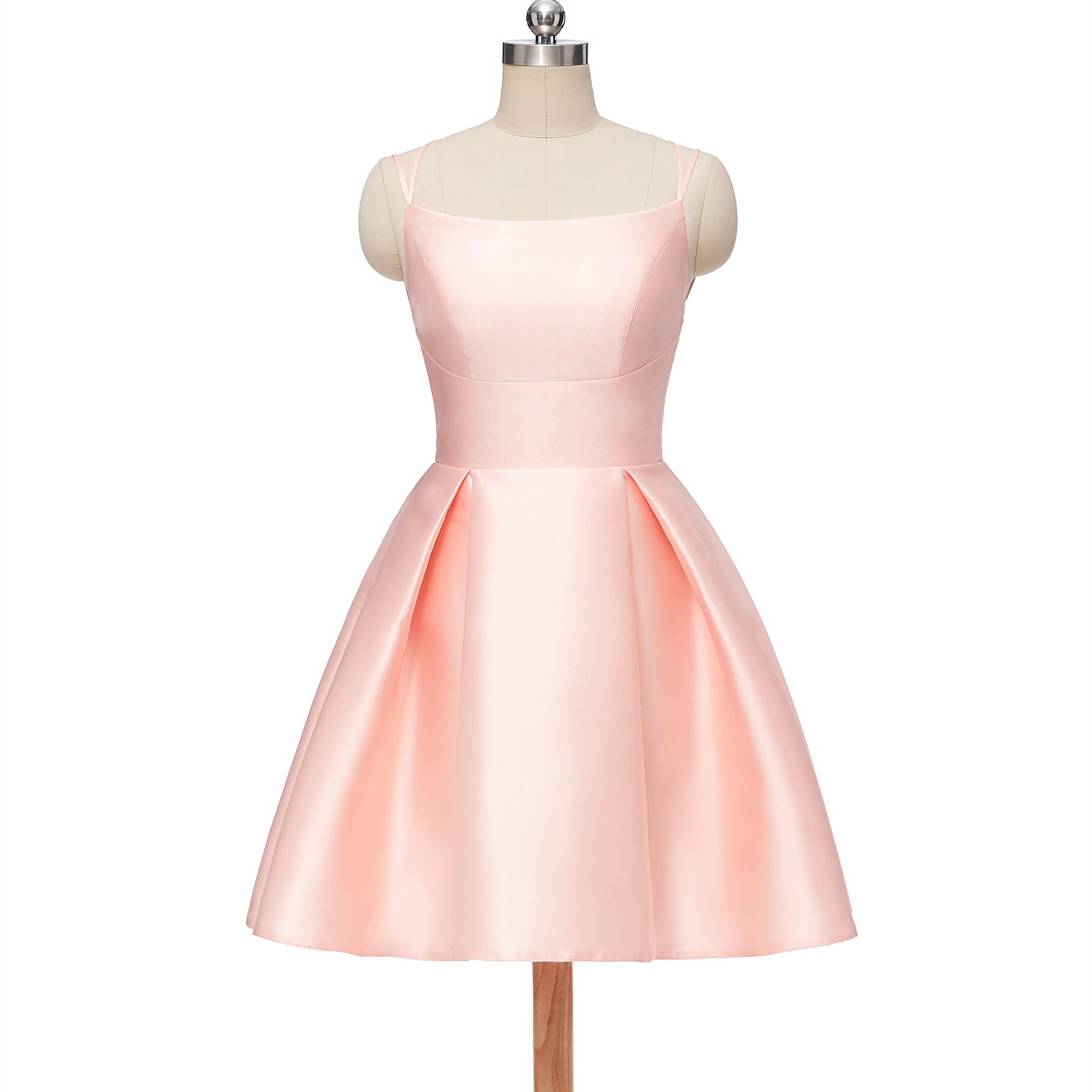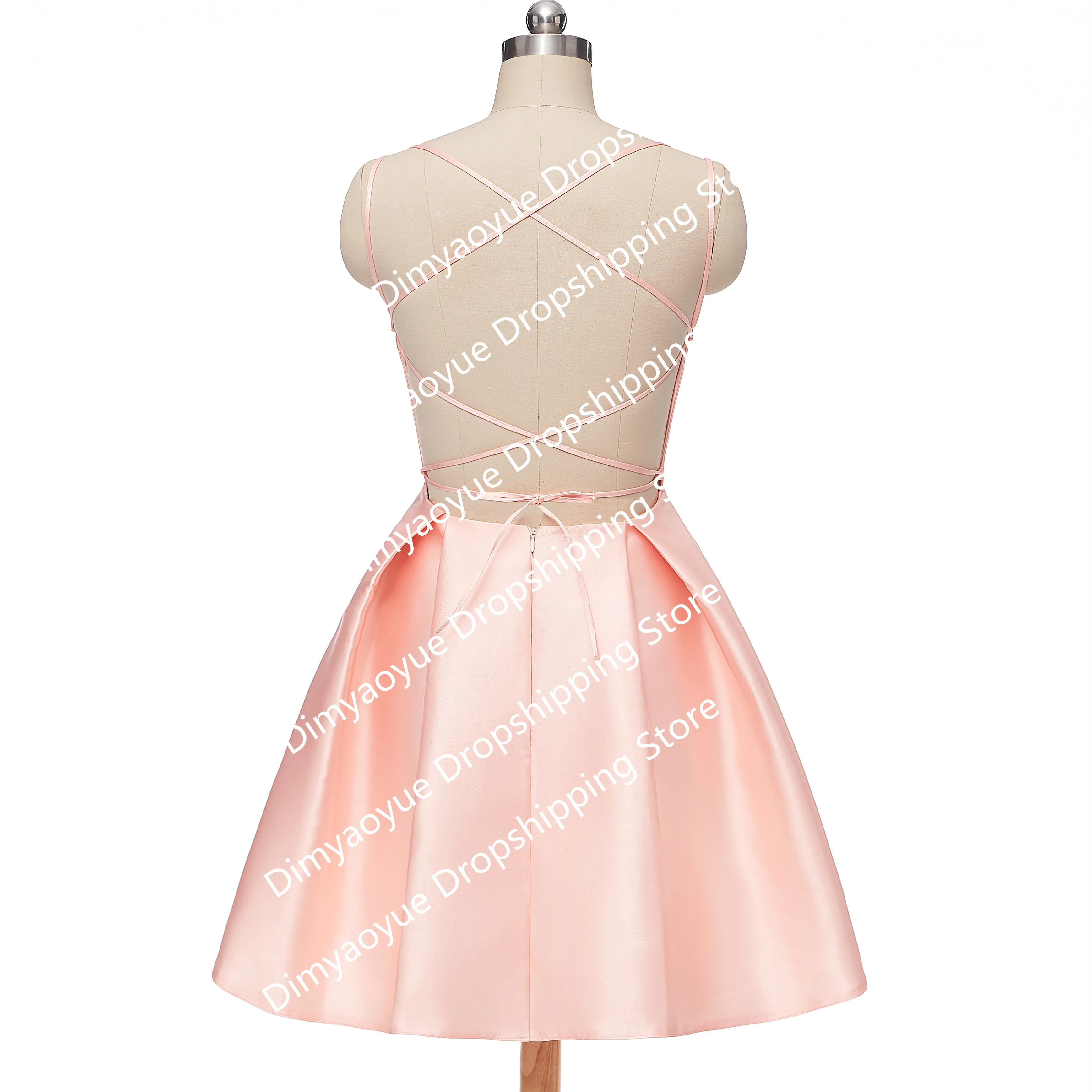 Элегантные Короткие атласные розовые платья для встречи выпускников с карманами трапециевидные платья-спагетти с перекрестной спинкой длиной до колена женские платья для вечеринок