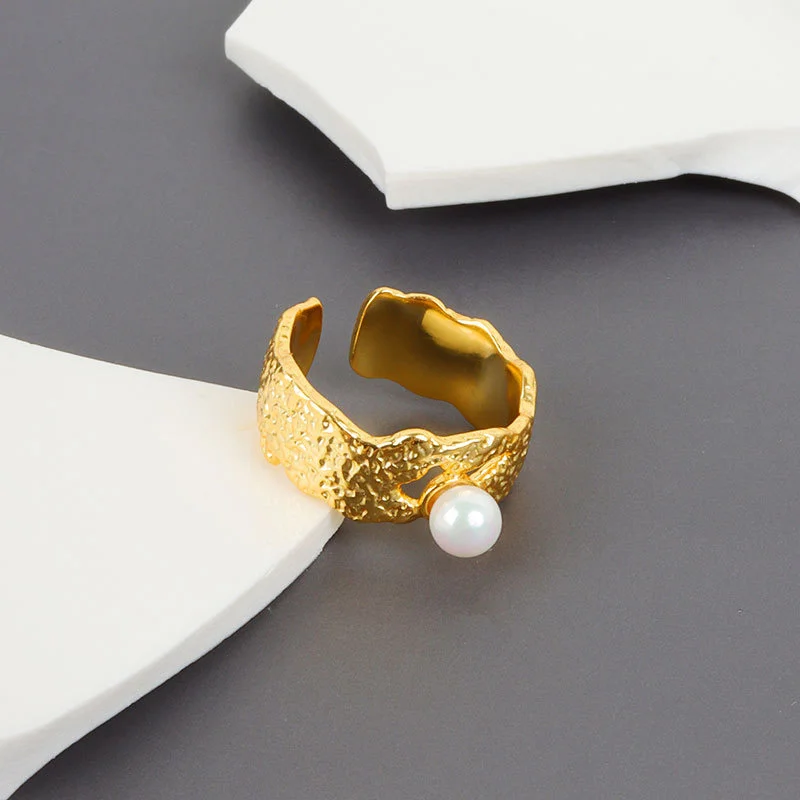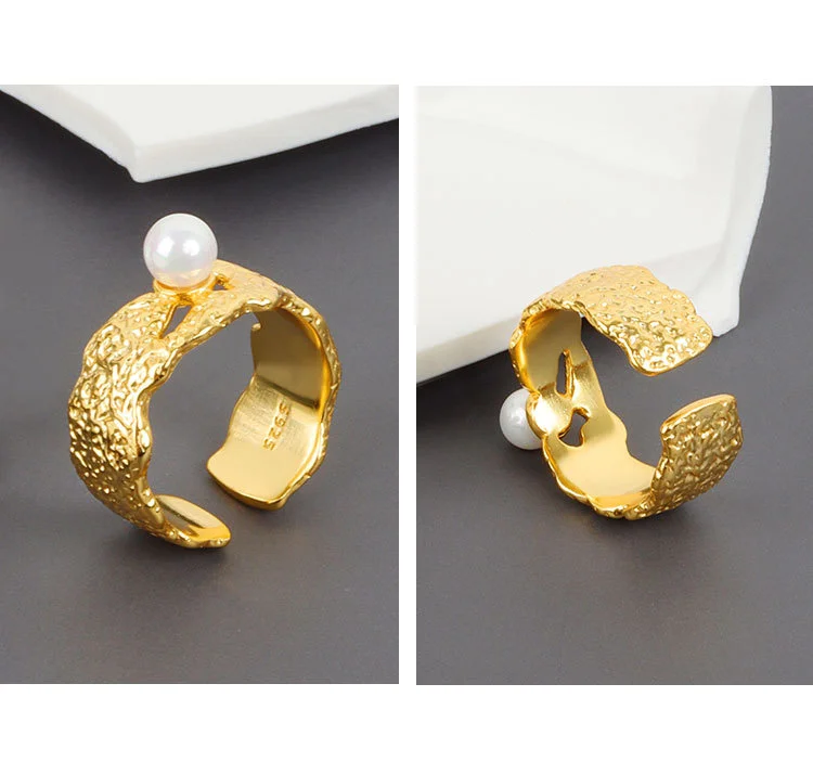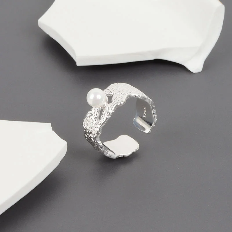 QMCOCO 925 серебро Корейский простой классический жемчуг широкое кольцо винтажные женские INS Модные ручной работы открытые регулируемые Модные Ювелирные изделия Подарки