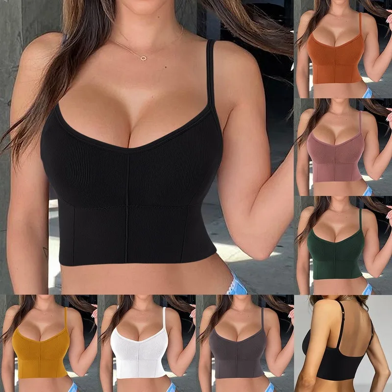 Женский U-образный бюстгальтер без косточек, спортивный бюстгальтер с дышащими лямками, однотонный топ, бюстгальтер для йоги, ударопрочный топ с эффектом пуш-ап для бега и фитнеса