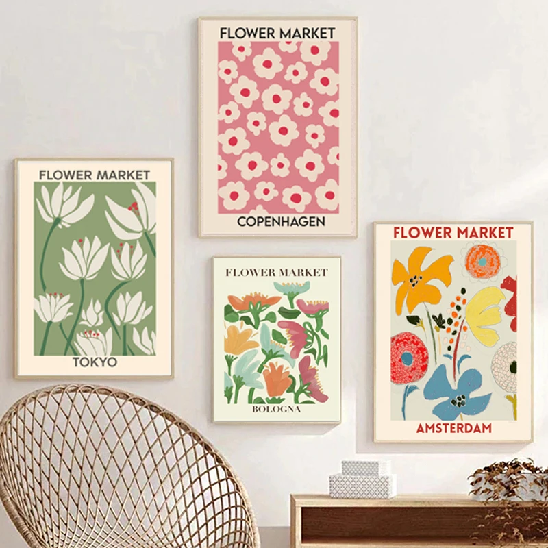 Настенные художественные принты, Декор, цветочный магазин, вывеска, Картина на холсте, цветочный рынок, плакаты Амстердам, флористика в стиле печати, печать на холсте, подарок