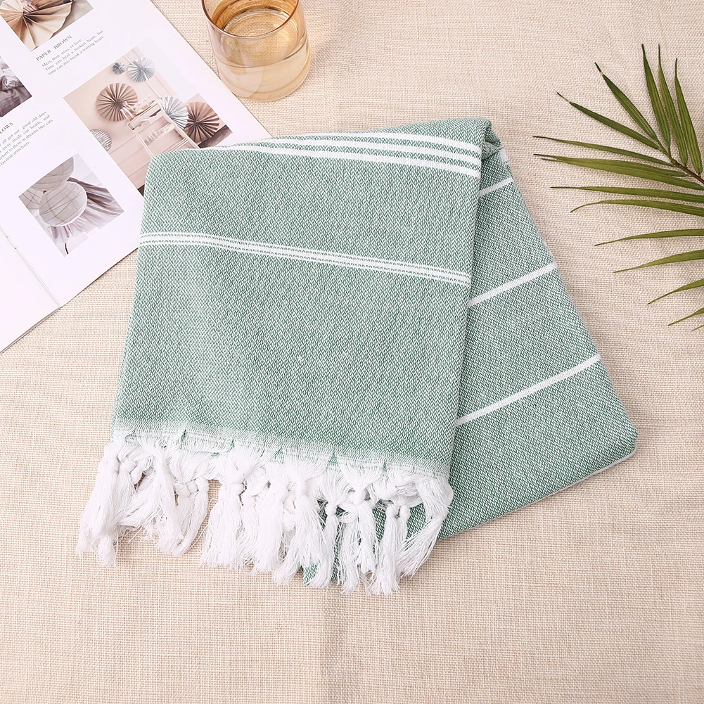 Турецкое хлопковое Полосатое Спортивное банное полотенце с кисточками для путешествий, спортзала, кемпинга, ванны, сауны, пляжа, тренажерного зала, одеяло для бассейна, легкое впитывание