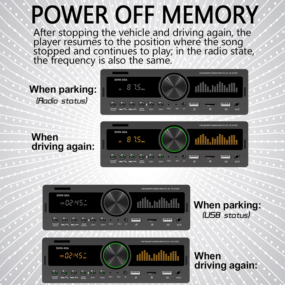 Описание:Двойной экран;Два порта USB, поддержка зарядки мобильный телефон;Силовые кабели ISO, plug and play для европейских моделей, дополнительная проводка не требуется;Что касается качества звука, мы внесли большие корректировки в аппаратное и программное обеспечение. Это хороший выбор для людей с высокими требованиями к качеству звука.Особенность:1. Радио (FM/AM, RDS)2. Кардридер TF, U-диск (аудио)3. Функция AUX4. Функция, совместимая с Bluetooth5. Аудиовыход RCA можно подключить к сабвуферу6. Подключение мобильного приложения7. Локатор и функция поиска автомобиля (опционально)8. Голосовой помощник мобильный телефон (Голосовое управление) (Примечание: просто включите переключатель голосового управления мобильный телефон через BT. Если мобильный телефон пользователя на английском языке, он поддерживается)9. Функция копирования источника звука10. Красочные огниСпецификация:Напряжение: 12 ВПрограммное решение: SWT6D801Тип экрана светодиодный светодиодная цифровая трубка + Частотный экранРазмер панели: 188*58 мм/7,40*2,28"Освещение: красочныйРазмер упаковки: 208*84*125 мм/8,19*3,31*4,92 "(цветная коробка)Глубина: 60 мм/2,36 дюймаПодключение к телефону: через приложение для телефонаРадиодиапазон: FM/AMРадиочип: ZT0811Мощность: 60 ВтРабочая температура: -10 ~ 60 CМодель, совместимая с Bluetooth: 5,0Чип усилителя мощности: TDA7388Радиочастота: FM 87,5 ~ 108 МГц, AM 522 ~ 1620 кГцСлот для карты памяти: Поддержка TF-картДистанционное управление: Дистанционное Управление картойДистанционное управление рулевым колесом: да, нет (опционально)Функция поиска и поиска автомобиля: да, нет (опционально)Порт USB: 2 порта USB (один для зарядки и один для чтения USB 2,0)Кнопка сброса: ДаКнопки: Физические кнопкиТерминал RCA: 4 выхода RCAПередний аудиовход AUX: ДаПоддерживаемый аудиоформат: MP3/WMA/WAV/FLACПримечание:1. Возможны небольшие отклонения в размере из-за ручного измерения, различных методов и инструментов измерения.2. Изображение может не отражать реальный цвет изделия из-за различий светильник щении, угле и мониторах.
