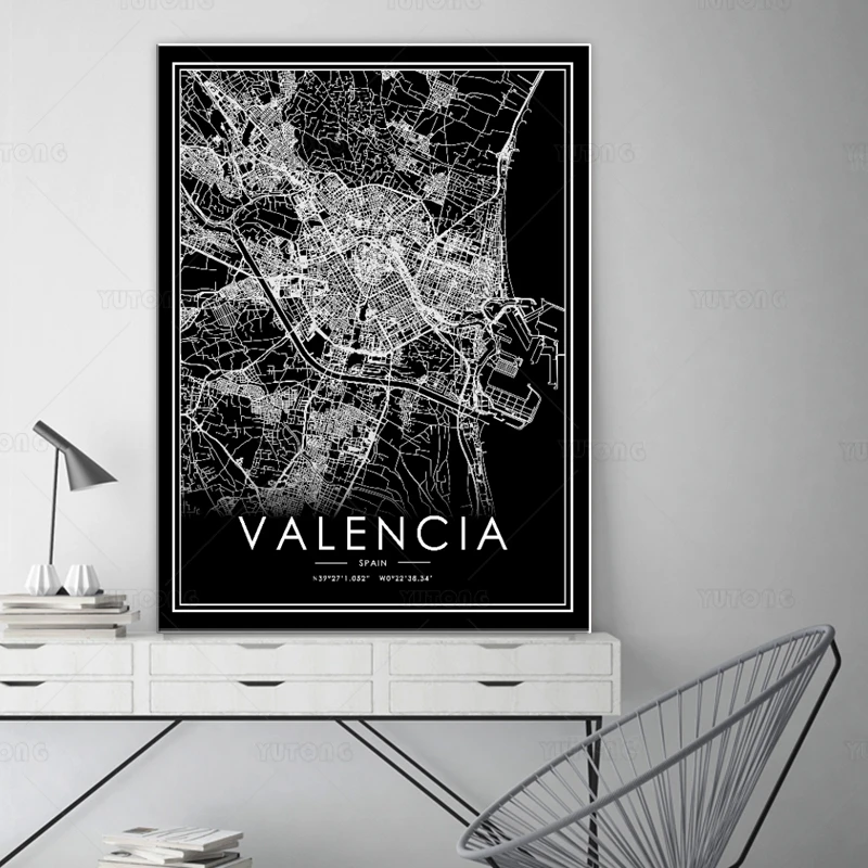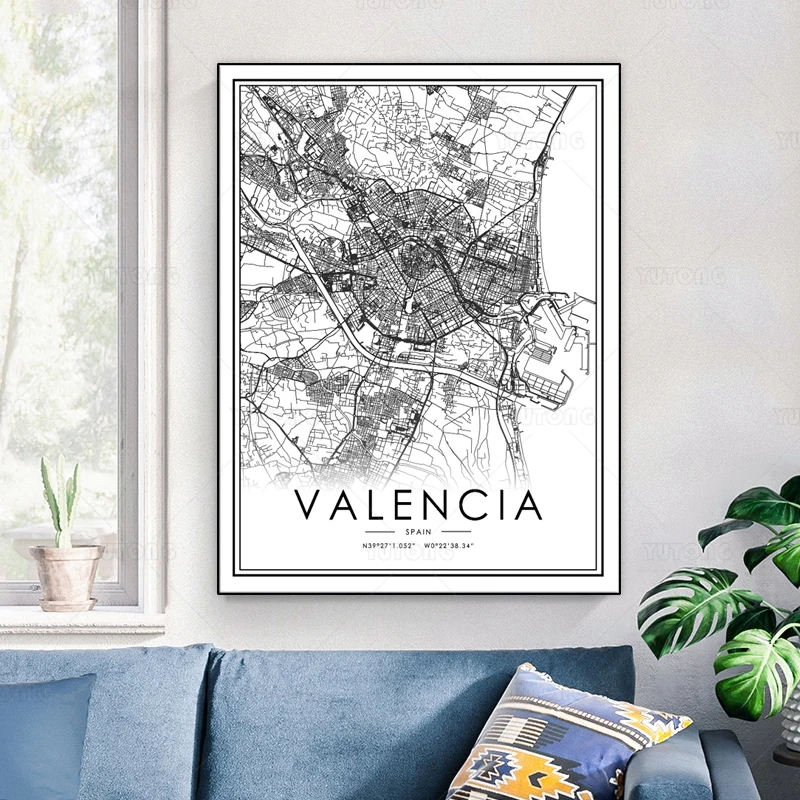 Картины на холсте с изображением Валенсии плакат-карта, современные принты, картины для гостиной, украшение для дома в рамке
