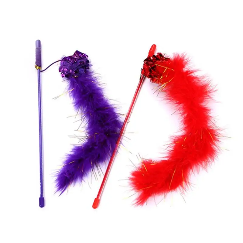 Высококачественный пластиковый стержень может выдерживать захват и укус кошки, а яркие перья привлекают внимание кошки.