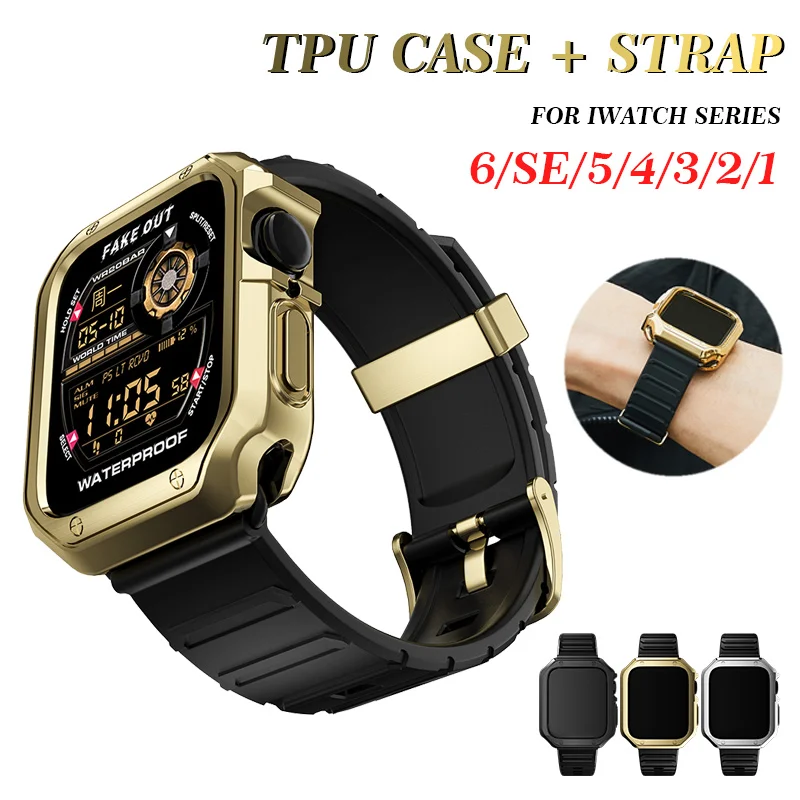 Чехол и ремешок из ТПУ с гальваническим покрытием для Apple Watch Band 38 мм 42 мм 40 мм 44 мм, аксессуары для iWatch Series 6 SE 5 4 3 2 1