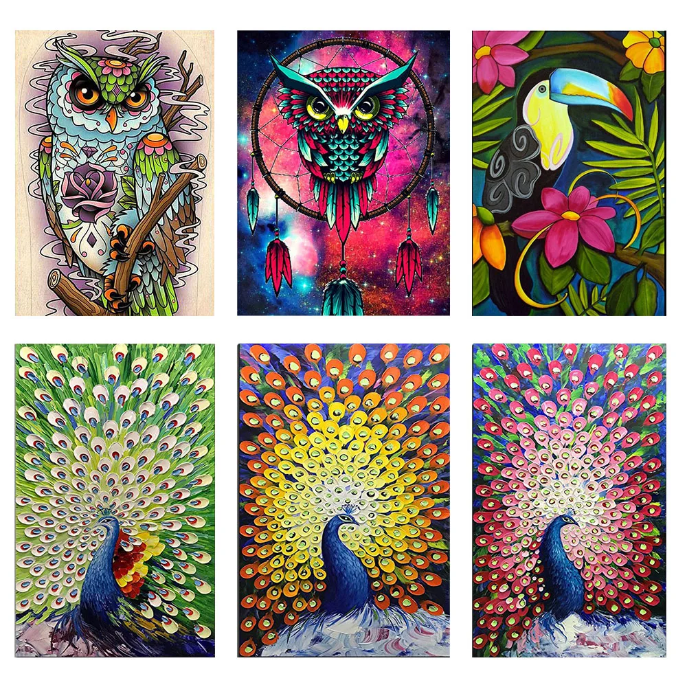 Алмазная живопись 5D с полным покрытием стразами, Набор для вышивки крестиком, Сова, павлин, животное, бриллиантовая вышивка, строительный подарок