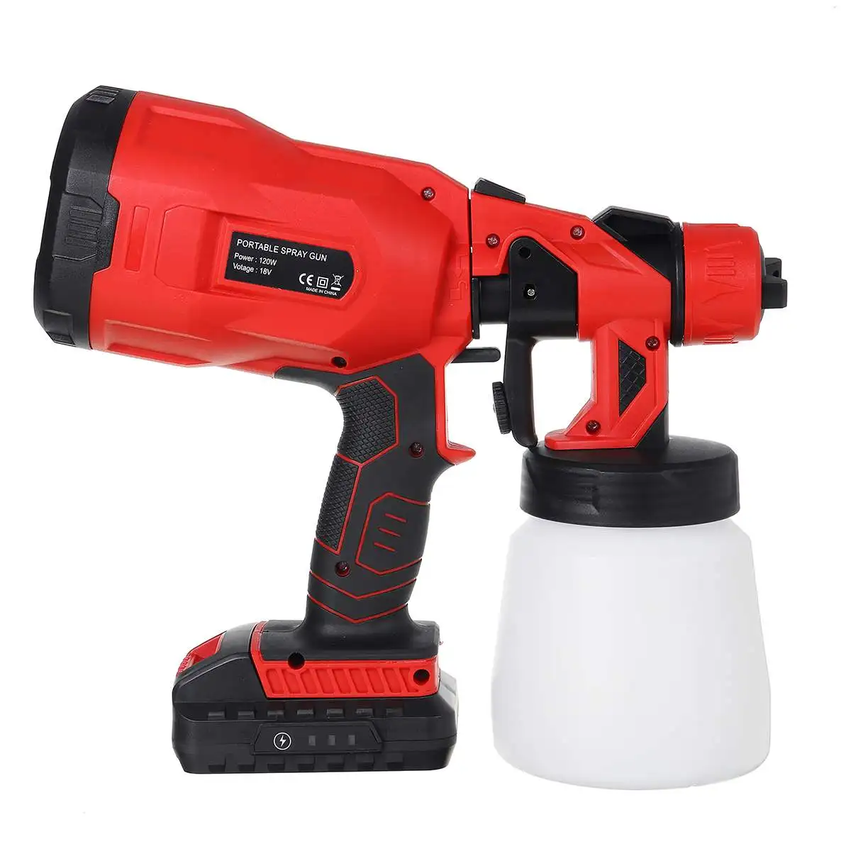 Примечание:Пожалуйста, очистите сразу же после использования!Функция:Подходит для ремонта мебели, забора, дверей, окон, стен, потолка и ремонта автомобилей, работы на большой высоте и так далее.Особенности:1. Беспроводная конструкция, идеальное решение проблемы, что шнур питания не достаточно длинный2. Свободно регулировать выход краски, регулируя регулятор потока на распылителе3. Три рисунка: круглый узор, вертикальный узор и горизонтальный узор. Вы можете выбрать один узор, чтобы разогнать краску в желаемой манере4. Широкое применение, подходит для покрытия дверей, окон, стен, заборов, настила, потолков, полов, шкафов, домашней мебели и других предметов.5. Чашка с вязкостью помогает определить, достаточно ли тонкий материал картины.Спецификация:Номинальная мощность: 1000 ВтНоминальное напряжение: 18 вЧастота: 50 / 60 ГцНоминальная скорость: 30000 об/минПоток воздуха: 160 л/минПоток краски: 100-200 мл/мин.Емкость аккумулятора: 2000 мАчРасстояние распыления: 200 - 250 ммШирина: 200-300 ммВязкость: 8 - 12sЕмкость контейнера: 800 млПосылка включает в себя:1 X Электрический пистолет-распылитель1 х Емкость1 х адаптерЗарядное устройство-1 шт.1 X чашка вязкости1 X сквозная игла1 X Руководство пользователя