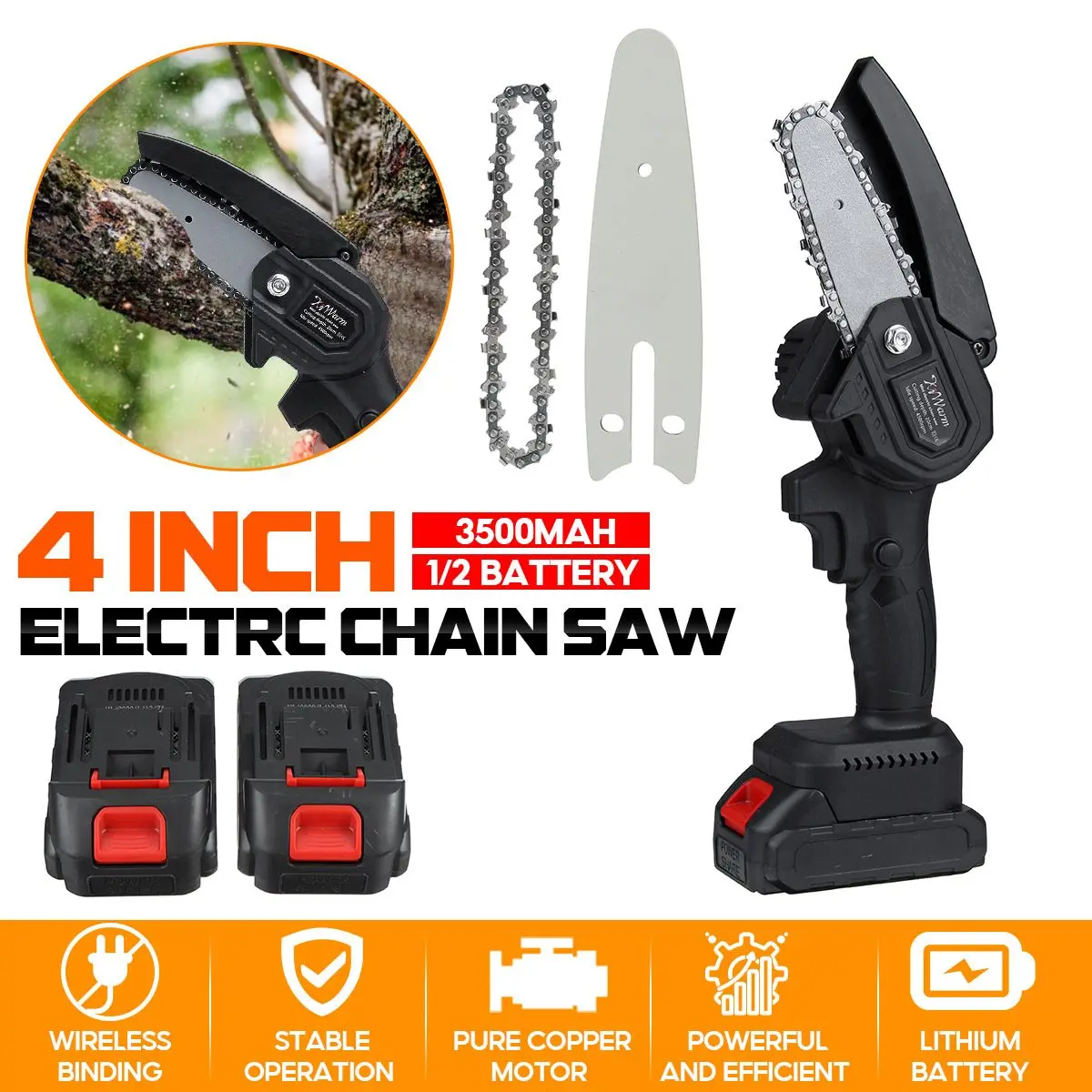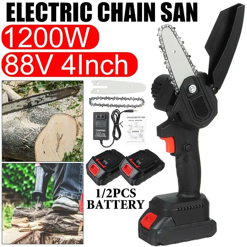 Электрическая цепная мини-пила, 88 в, 1200 Вт, 4 дюйма, с 12 аккумуляторами