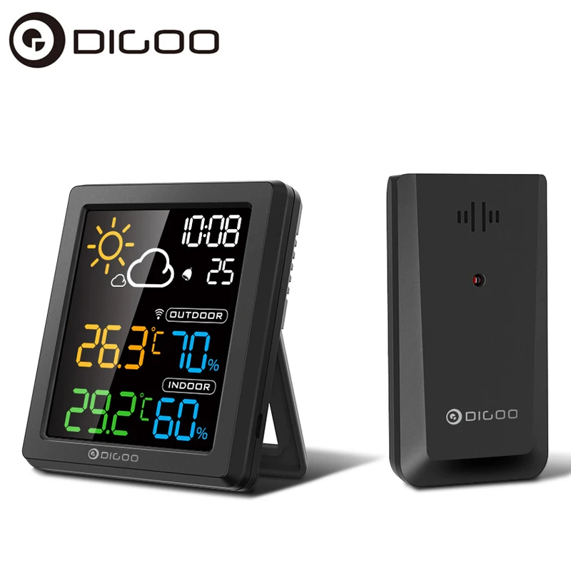 Описание:DIGOO DG-8647 Мини HD цветной экран ЖК-Метеостанция Будильник умный гигрометр термометр Повтор двойные настольные часы
